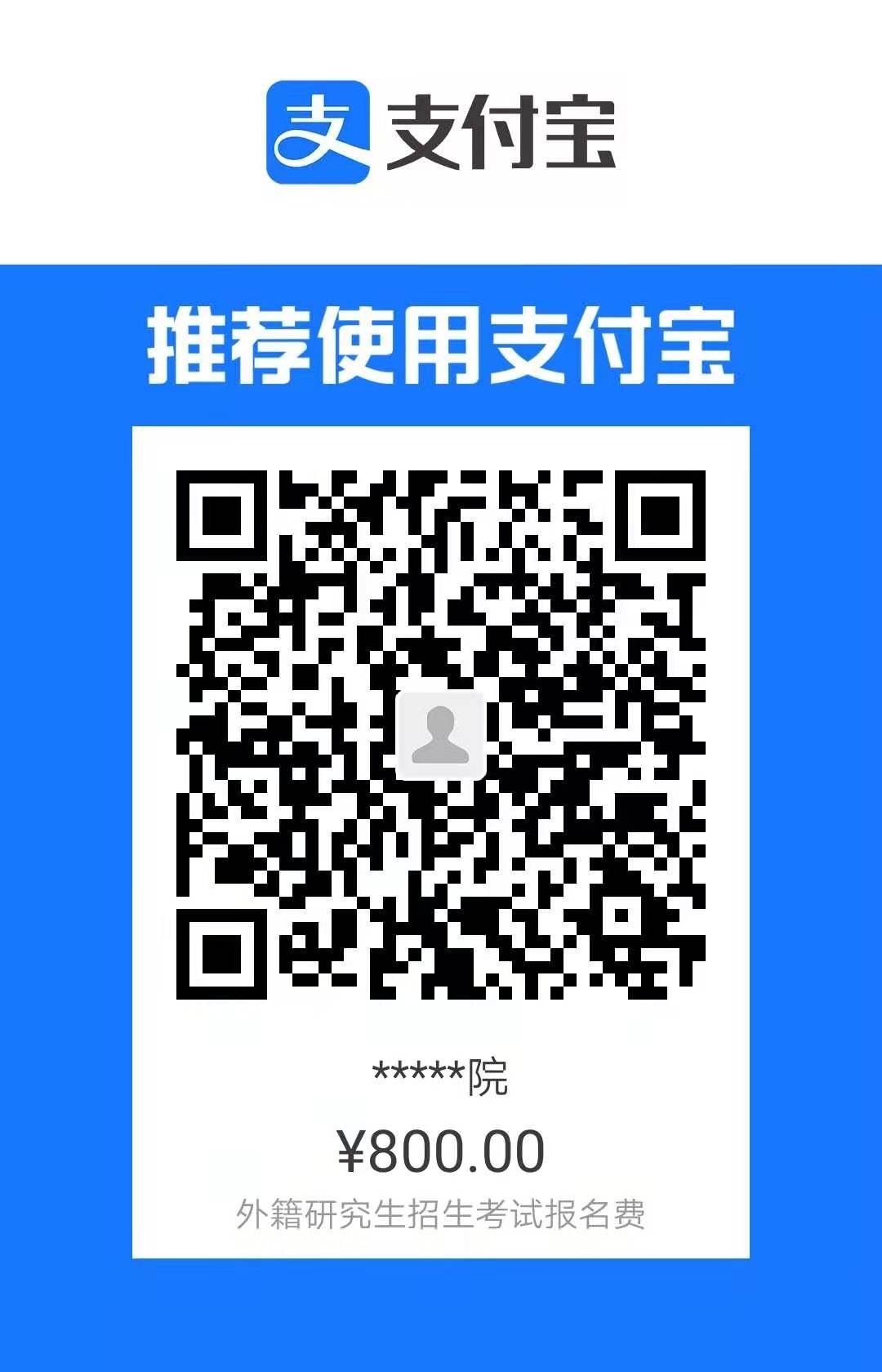 (8)缴费成功截图。考生须支付宝扫描二维码缴纳报考费800元,备注姓名、报名号,缴费成功后,保存上传订单截图,以“8.缴费截图”命名。注:考生的一切费用自理,报名后不参加考试者费用不退。