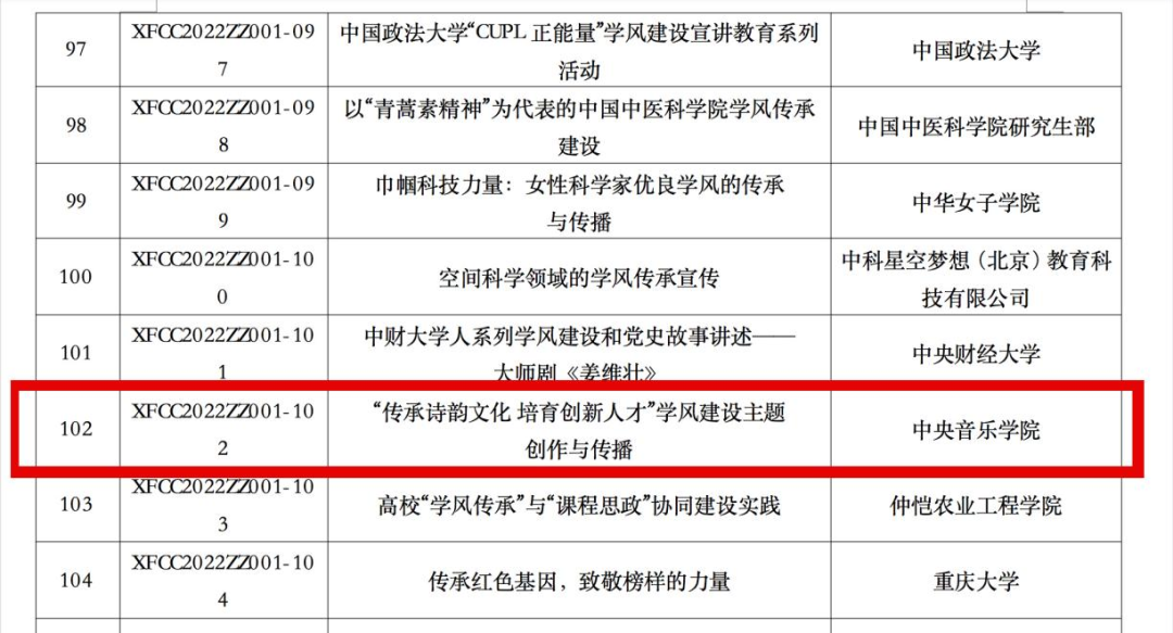 近日,中国科协公布了2022年度学风传承行动项目立项名单。由北京环球音像出版有限公司牵头,KY开元作曲系张帅教授作为项目负责人申报的《“传承诗韵文化 培育创新人才”学风建设主题创作与传播》,经专家评议和遴选,从清华大学、北京大学等全国知名高校和科研院所的531个申报项目中脱颖而出,作为唯一的一所专业艺术高等院校,获批成为本年度“精品资助项目”。