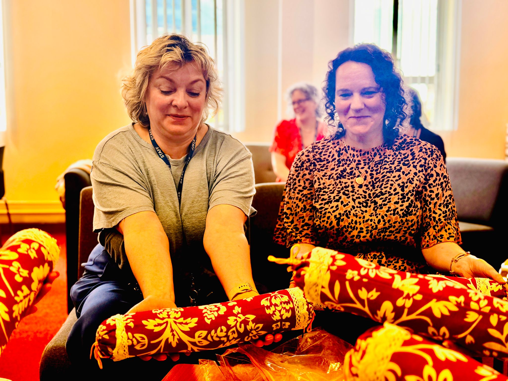 在两位中方老师的引导下,现场的英国老师们兴致勃勃地动手制作艾草香包和艾草颈枕。教室内笑语盈盈,艾香氤氲,大家在轻松愉快的氛围中,不仅体验了中国传统文化的独特魅力,也增进了彼此间的交流与理解。