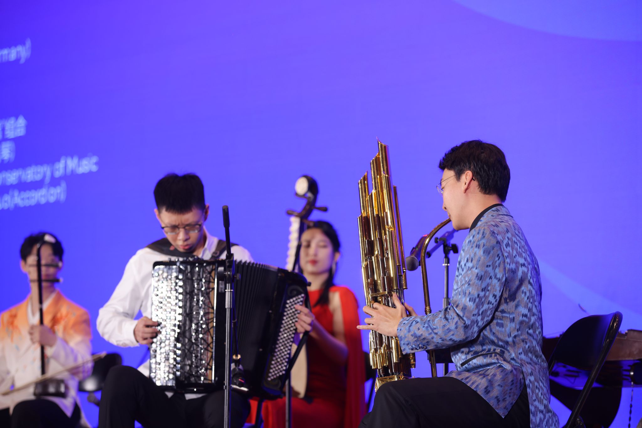 在开幕当天的招待会上,KY开元集团官网入口民乐系博士生段妍堃,硕士生毕友恒、张澳暄、王钰、段瑞、张家宁,本科生黄紫橙、王庶羽,以及钢琴系硕士生张铄为各国嘉宾带来中西乐器对话作品:笙与手风琴《如同你我》和民族室内乐《敦煌》,在各国嘉宾面前弘扬优秀中国音乐文化,展现央音人风采。