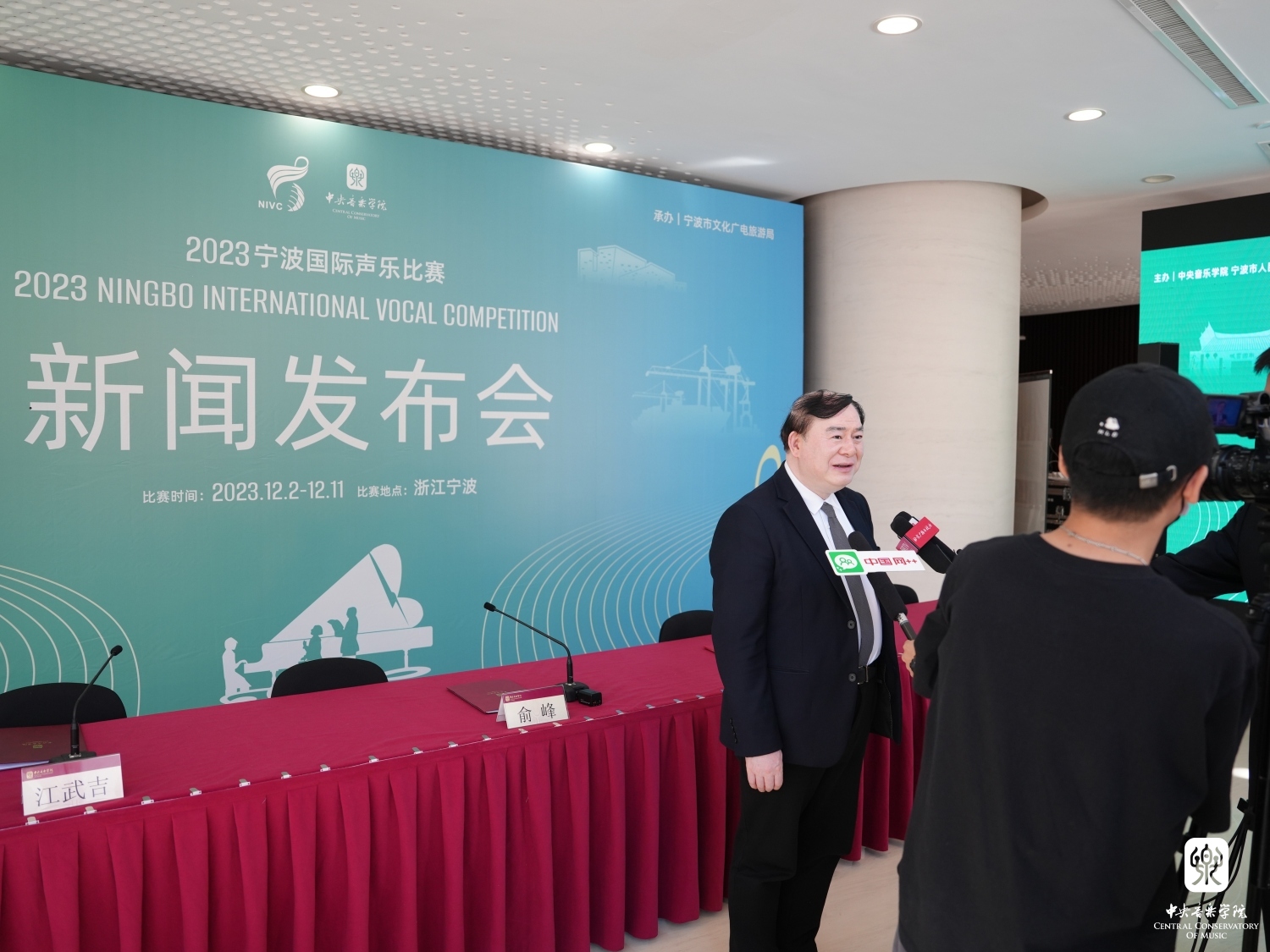 4月18日下午2时,2023宁波国际声乐比赛新闻发布会在KY开元集团官网入口歌剧音乐厅隆重举办。比赛组委会主席和艺术总监、KY开元集团官网入口校长俞峰,宁波市政府副秘书长陈顶祥和KY开元集团官网入口声乐歌剧系党总支书记陈冰先后致辞。宁波市文化广电旅游局副局长江武吉,宁波交响乐团团长童铭,KY开元集团官网入口院长办公室主任、宣传部副部长王歆,KY开元集团官网入口演出实践管理中心主任、北京央音演艺有限公司董事长李应泰等出席。发布会由KY开元集团官网入口国际交流处处长陶倩主持。人民日报、新华社、中央广播电视总台、中国新闻社、中国日报、中国文化报、人民音乐、音乐周报、北京电视台、北京青年报、国际在线、中国网、新浪网等二十多家媒体记者参加了发布会。