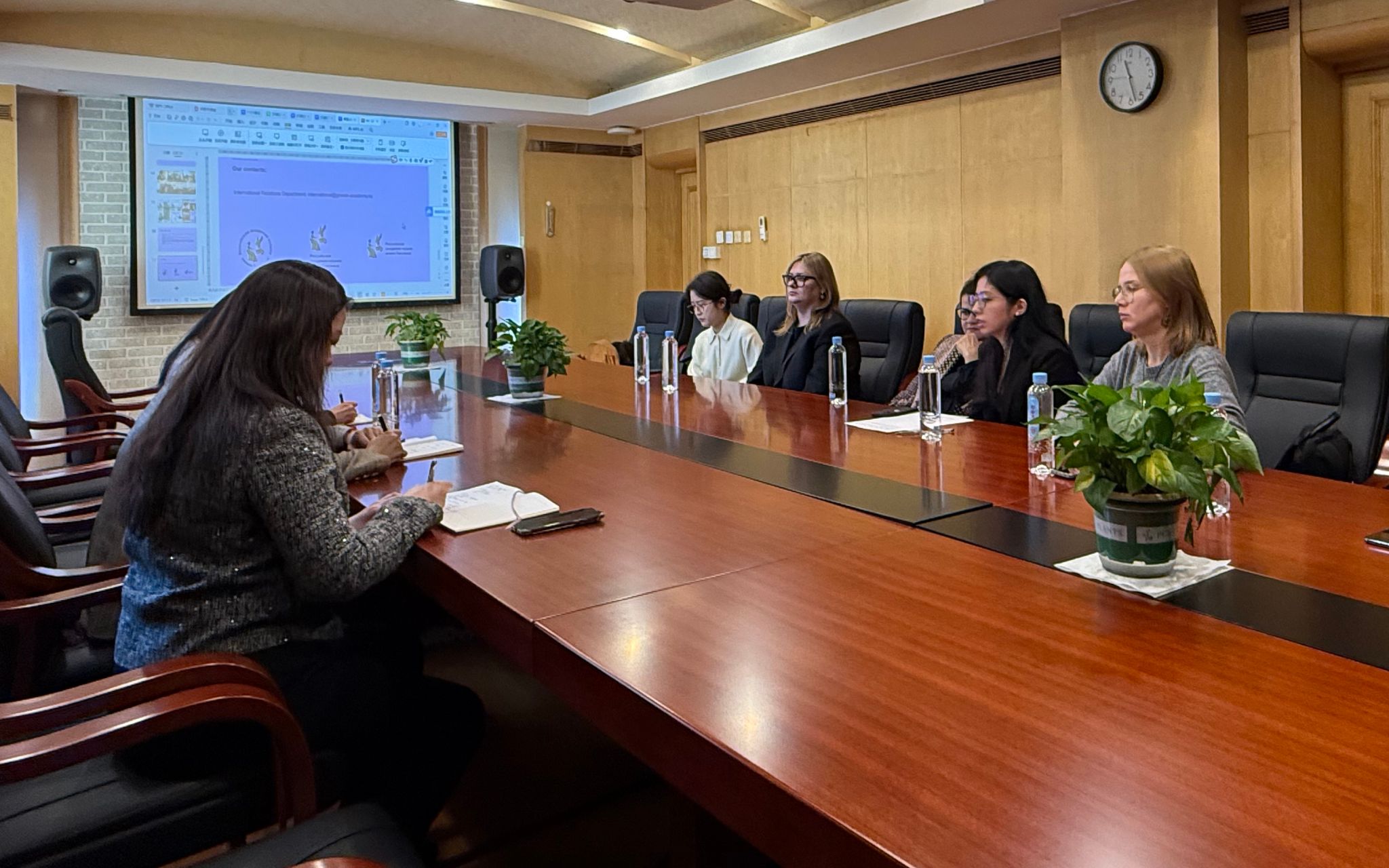 12月3日上午,俄罗斯格涅辛音乐学院代表团一行来访KY开元。该校科学研究副校长塔季扬娜·纳乌缅科(TATIANA NAUMENKO),音乐管理系主任、学术委员会秘书达里娅·罗季奥诺娃(DARIA RODIONOVA),国际部工作人员塔季扬娜·萨佩吉娜(TATIANA SAPEGINA),以及俄中音乐交流学术与创作中心秘书奥尔祖博努·努鲁洛耶夫娜(ORZUBONU NURULLOEVNA)与KY开元副校长秦文琛、教务处处长汤琼、研究生部副主任张桥颖以及国际交流处柴扉进行了交流座谈。