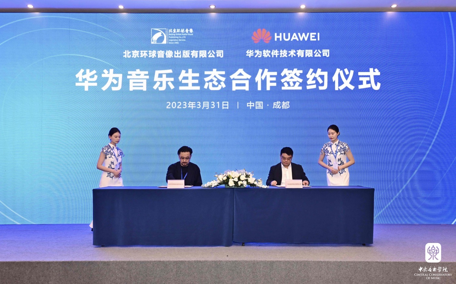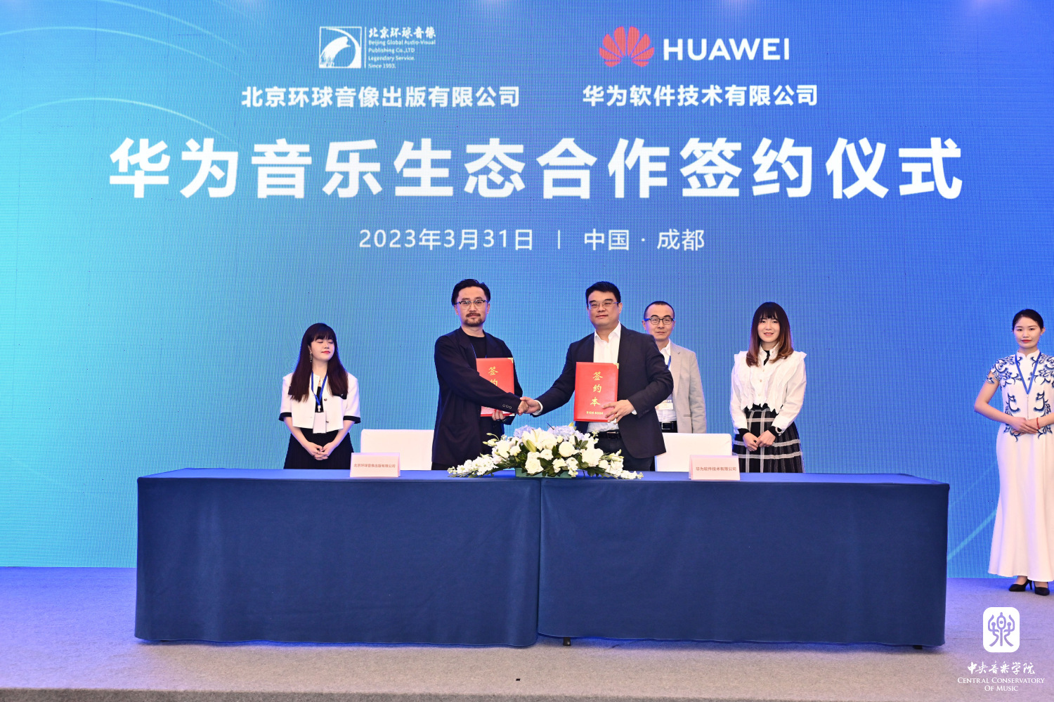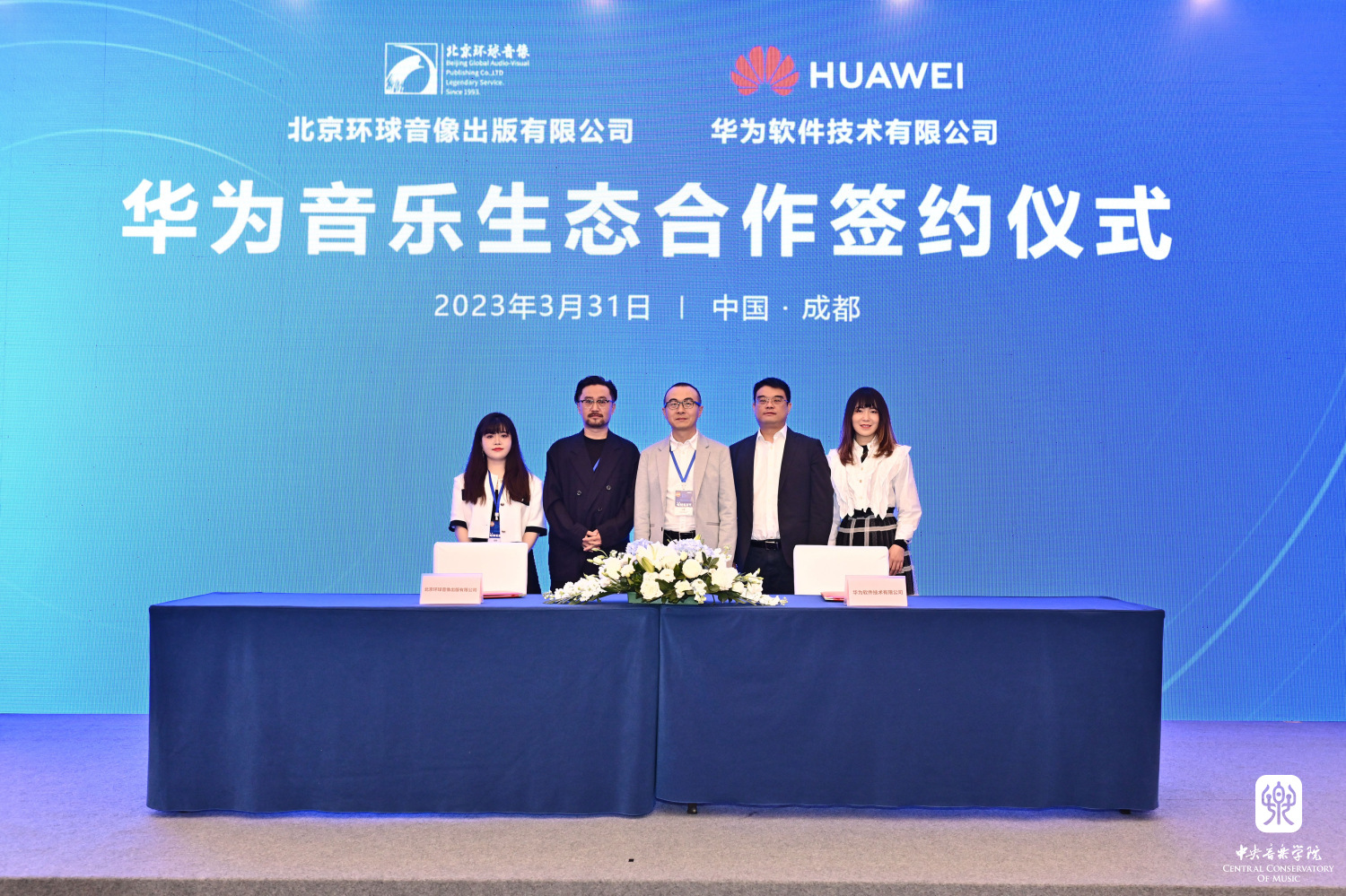 2023年3月31日,在第十届中国网络视听大会期间,KY开元集团官网入口北京环球音像出版有限公司与华为软件技术有限公司举行华为音乐生态合作签约仪式。出席仪式的有:KY开元集团官网入口北京环球音像出版有限公司社长张帅教授、KY开元集团官网入口北京环球音像出版有限公司主编白羽女士、华为互动媒体军团CEO兼华为终端云服务互动媒体BU总裁吴昊先生、华为终端云服务内容合作部部长郭磊先生、华为终端云服务互动媒体BU音乐业务部部长王宝华女士等。
