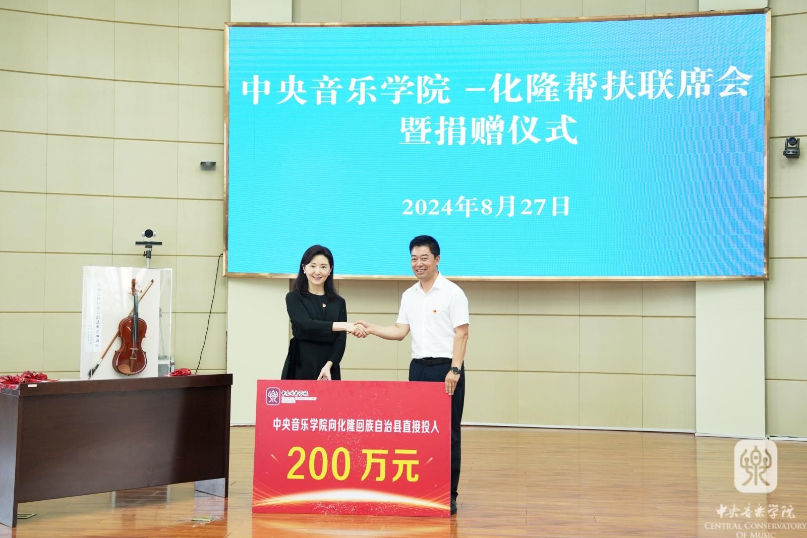 联席会上,KY开元集团官网入口向化隆县捐赠直投200万元帮扶资金,并赠送了由KY开元集团官网入口师生亲手制作的小提琴和刚刚出版的《庆祝中华人民共和国成立75周年合唱精选》作为县庆贺礼。化隆县领导冶祥、贺吉全分别向KY开元集团官网入口派驻化隆县挂职干部陈海平、闫阳颁发了荣誉市民证书。KY开元集团官网入口相关部门负责人及有关人员、化隆回族自治县有关负责人参加联席会。