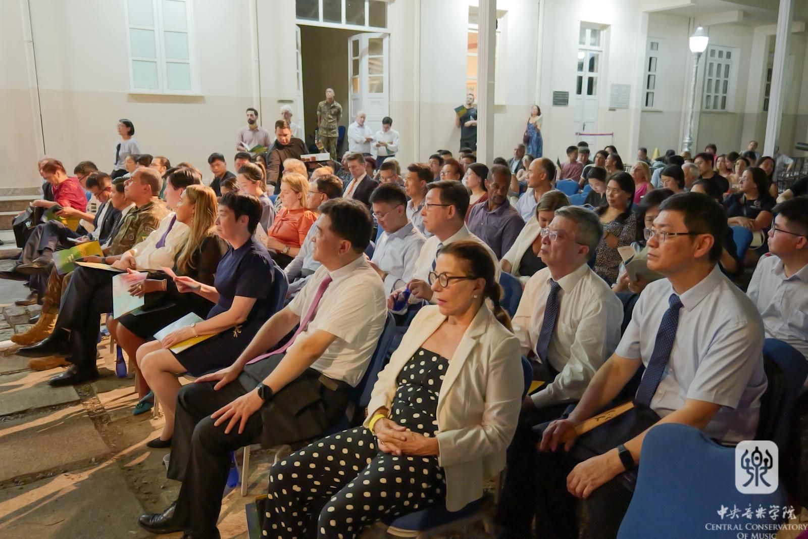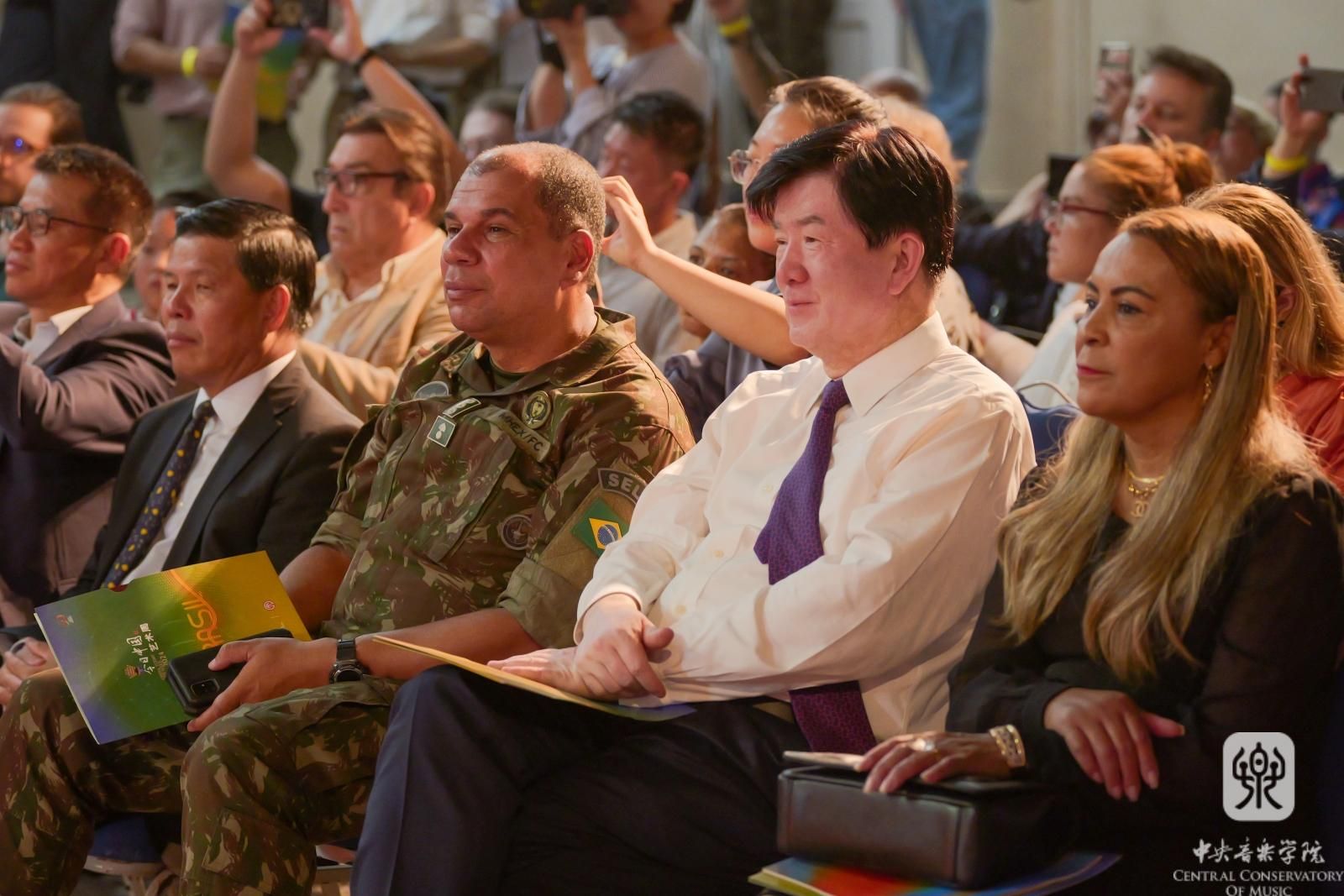 中国文联党组书记、副主席李屹,中国音协分党组书记、驻会副主席韩新安,中国音协分党组成员、副秘书长、一级巡视员王宏,中国驻哥伦比亚大使朱京阳,中国驻里约热内卢总领事田敏,中国驻巴西大使馆公使衔参赞舒建平,巴西里约州州议会副议长蒂娅·茹,科帕卡巴纳要塞司令罗伯托,巴西山河文化促进中心执行总裁玛西娅,哥伦比亚文化部代表、国际合作司中国事务主管亚历杭德拉,塔德奥大学代表、国际处处长迭哥,哥伦比亚国家芭蕾舞团总监西尔瓦娜,波哥大国际电影节总监拉瓜多等,与巴西、哥伦比亚各界人士,当地华人华侨等共同观看音乐会。