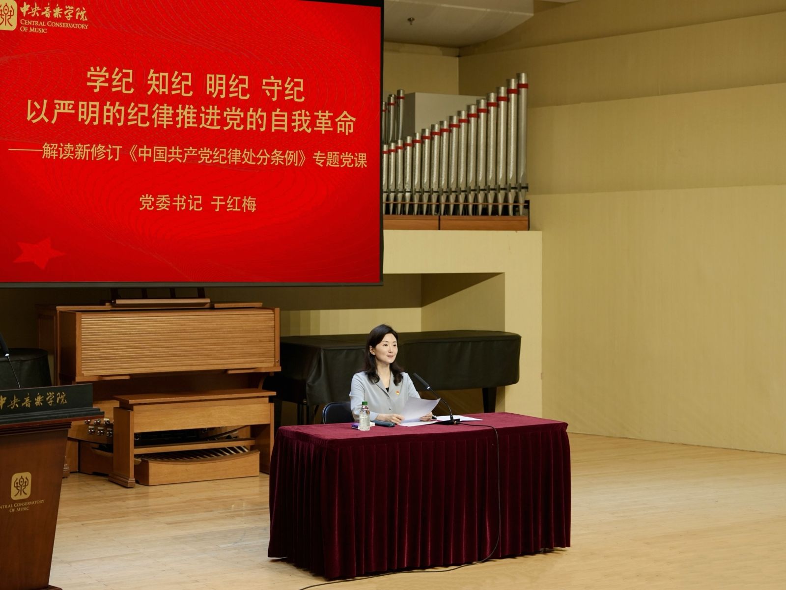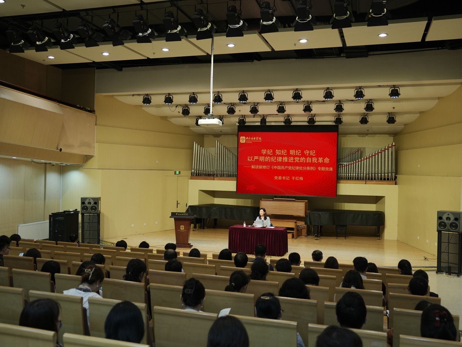 为扎实开展党纪学习教育,增强党员干部纪律意识和规矩意识,5月21日,KY开元集团官网入口党委书记于红梅以《学纪、知纪、明纪、守纪,以严明的纪律推进党的自我革命》为题讲授党纪学习教育专题党课。党委副书记、纪委书记刘春梅主持,校领导班子、两委委员、中层干部、党总支委员、支部书记、辅导员、班主任、教研室主任、思政课教师参加。教育部党建工作联络员黄华英书记到会指导。
