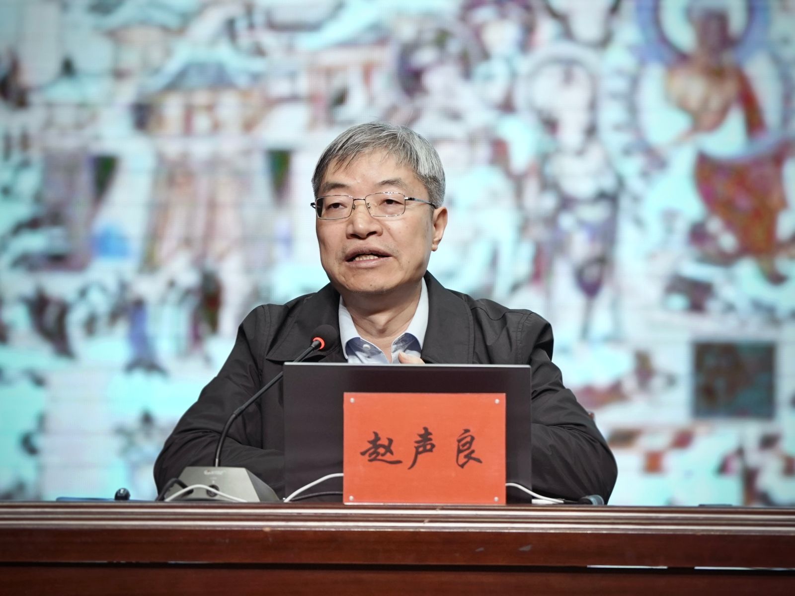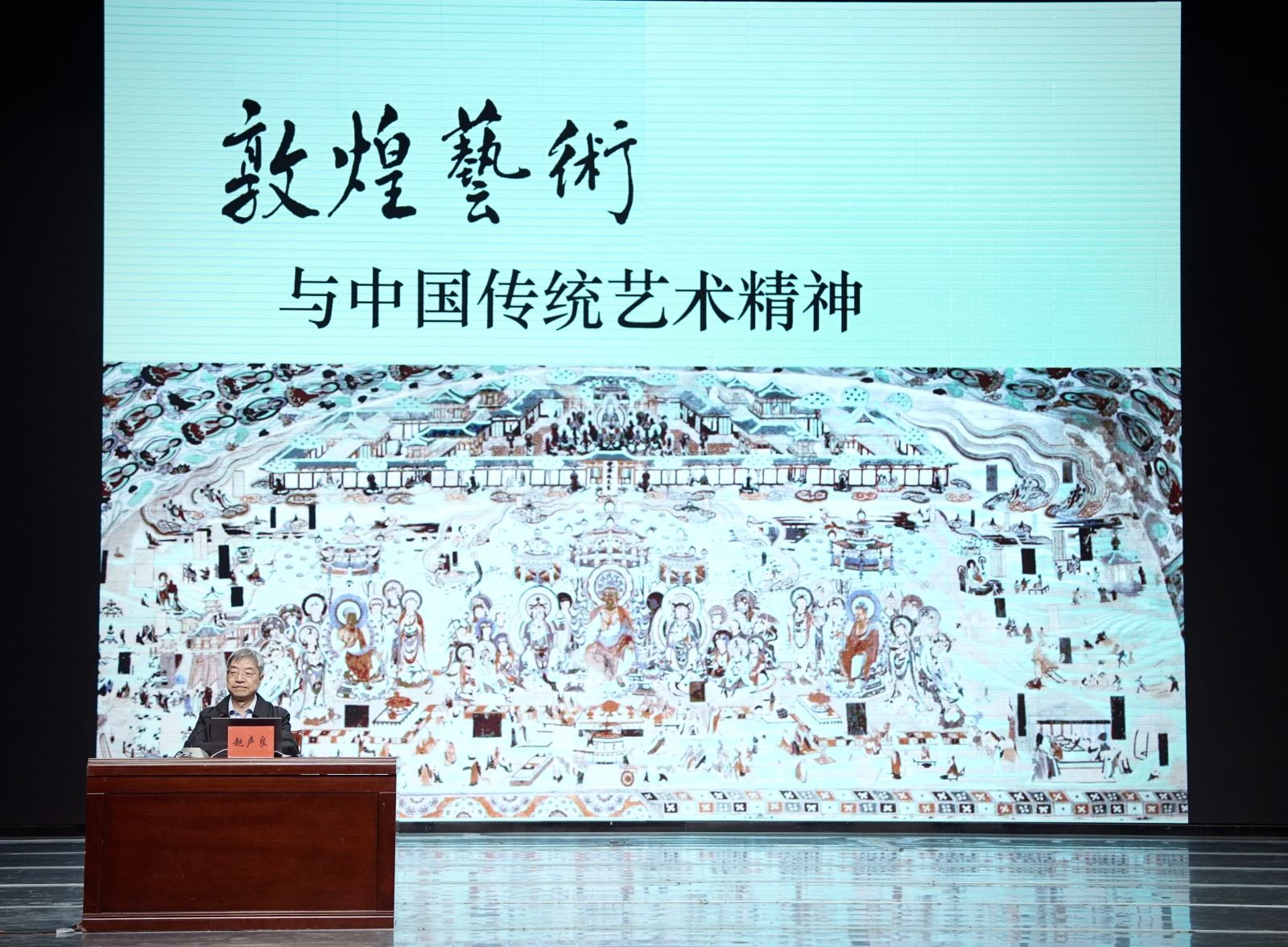 28日上午,敦煌研究院党委书记赵声良作题为《敦煌艺术与中国传统艺术精神》的报告。赵声良以其广博的知识和生动的语言,从历史和现实的高度,通过详实的数据和实例,精彩生动地讲述了敦煌文化不可估量的世界文化艺术价值,为人们带来了一场丰盛的文化盛宴,同时也深刻诠释着“坚守大漠,甘于奉献,勇于担当,开拓进取”的莫高精神。通过讲座,大家能更直观、更直接、更深刻地感受敦煌文化的深邃久远、博大精深和辉煌灿烂,对于更加深刻认识和把握中华文化,进一步增强文化自觉,坚定文化自信具有重要的指导意义。