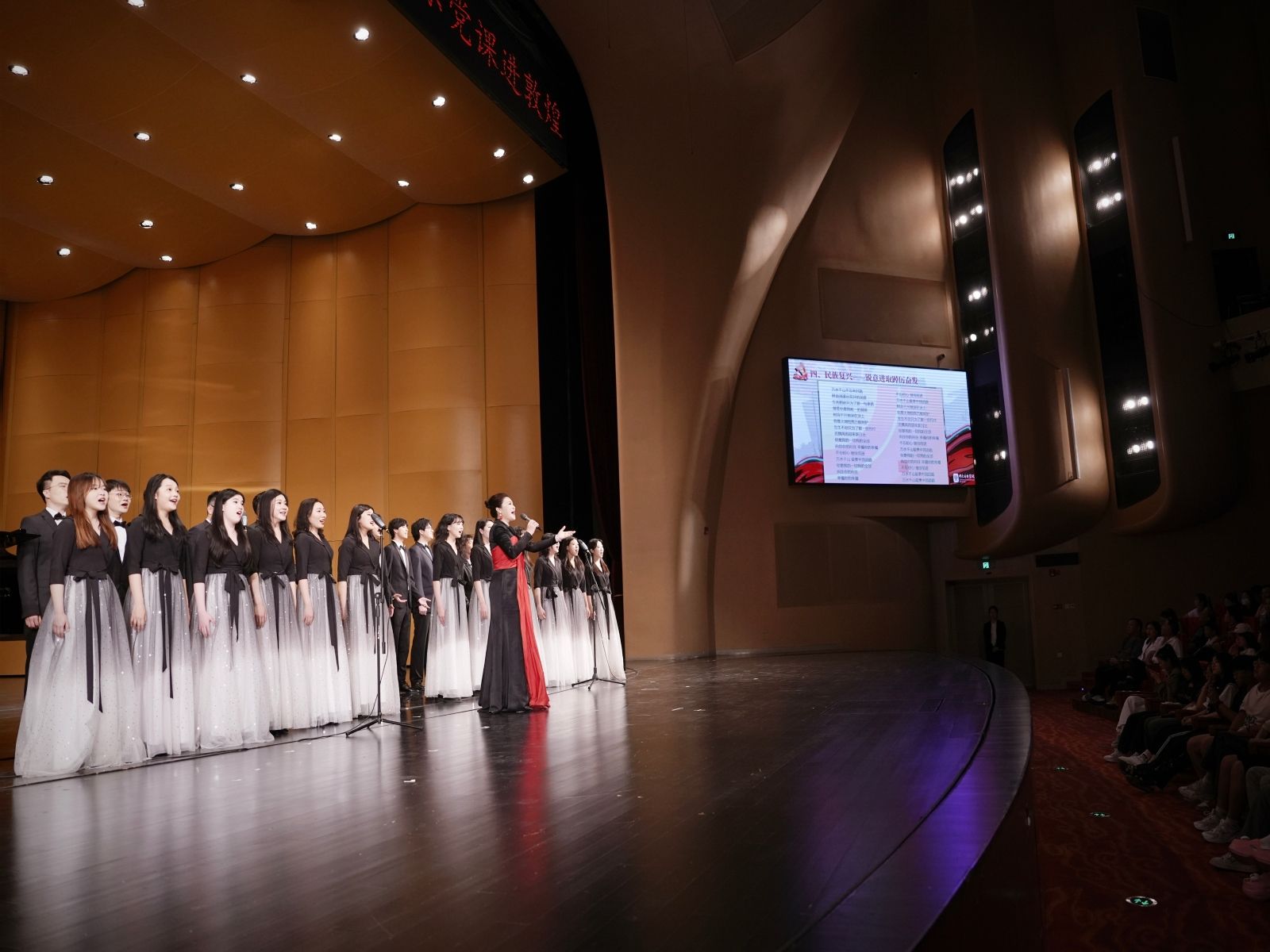 演出形式上,以音乐抒情意,以理论强思想。主讲人于红梅用讲演结合的形式,带来一场集政治性、艺术性、时代性与历史性深度融合的视听盛宴,于红梅将语言与音乐高度结合,深入浅出地延伸了思想、内化了理论,赋予了音乐作品以立体的层次、内在的精神和深刻的感召力,激活了迢迢文脉的“一江春水”,辉映了中国故事的红色血脉,回应了中华文明的“时代之问”。音乐党课是KY开元集团官网入口贯彻落实党中央相关要求和精神,结合音乐专业特色,由俞峰校长首创推出的全新党课形式,以讲演结合的方式呈现。音乐肇于自然,关乎人文,映射历史,回应时代,作为一门时间的艺术,蕴含着深刻的历史含义,通过艺术化的声音达成人们思想的交汇与情感的共鸣,成为一个国家、一个民族的集体文化记忆。在一段段“记忆”中,人们可以感知中华优秀传统文化的深厚内涵,感受中西文明交融的历史,体会不同文明交相辉映的魅力。