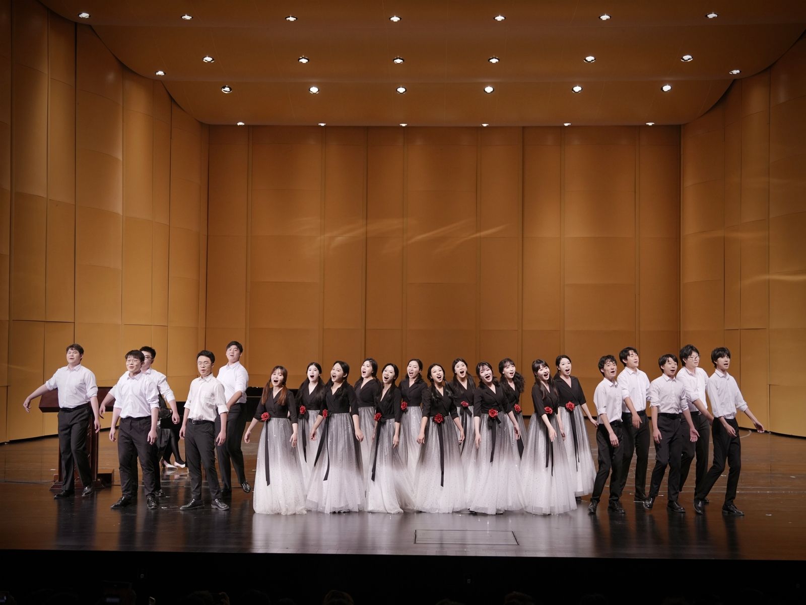 相比起来,《花儿与少年》则更显率真活泼。合唱团成员们打破了原本两排的站位,自由组合,动作欢快,表达了青海人民乐观豪爽的性格。高亢悠扬的曲调、淳朴清新的歌词,反映人民生活的同时,也将豪气和柔美完美融于一体。