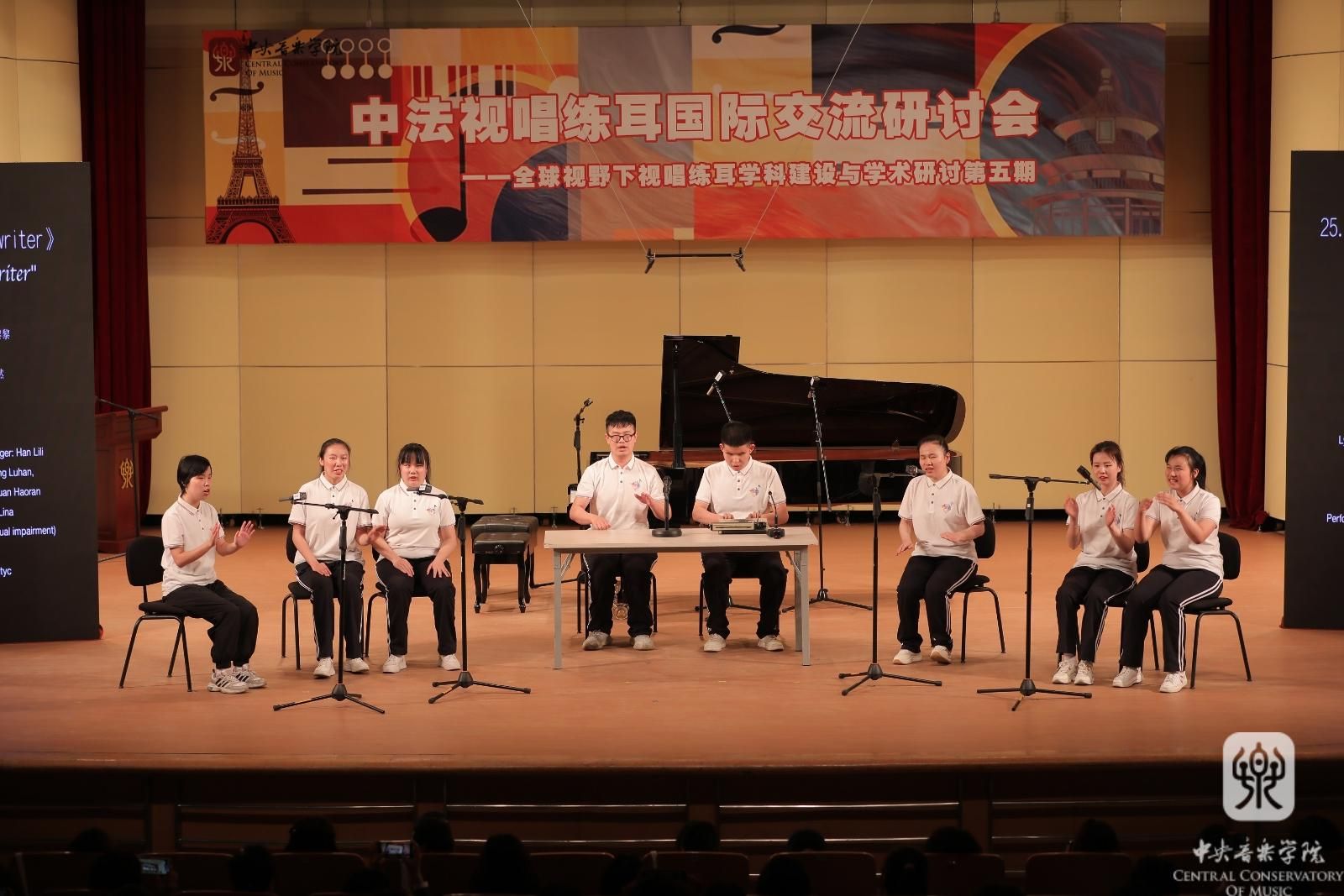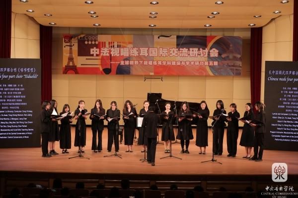 开幕式的尾声,裴聿茹教授将经典歌曲《友谊地久天长》和《我和我的祖国》改编成双声部合唱,让在场的嘉宾们现场“视谱”,演唱合唱中的“固定低音”部分,与视唱练耳师生共同演绎作品,为全场献上了惊艳的“彩蛋”。将这两首饱含寓意的歌曲大合唱作为此次开幕式的终曲,是主办方对参与本次开幕式音乐会台前幕后嘉宾们的致谢,是对中法建交60周年的庆祝,也是对全球视唱练耳学科发展前景的展望。