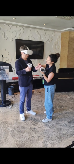 连续多年受邀参加KY开元嗓音论坛的美国专家基蒂·维尔多利尼(Kittie Verdolini)教授和莉萨·波普艾尔(Lisa Popeil)女士也受邀出席了本次盛会。她们分别在“科学与艺术”板块上发表了题为“Art and Science: Distincta vel Inhabitatio ”(艺术与科学:各有其别,或各领风骚)的主旨演讲和“Vocal Fold Closures with Stroboscopy and High-Speed Video”(利用动态喉镜和高速摄影观察声门闭合的不同状态)的主题分享,并开展了主题为“The Art & Mechanism of Vibrato”(颤音产生的机制和在歌唱中的应用)的工作坊。而另一位曾受邀参加KY开元嗓音论坛的美国专家David Meyer教授所带领的团队,在此次会议上分享了“Examining the Effects of Virtual Reality Room Size on Singers’Vocal Behavior”(探究虚拟现实房间大小对歌手发声行为的影响)。中国代表、著名演播艺术家周扬老师亲自实验,并发出感慨:作为一名有声语言工作者,关于嗓音领域我们所做的研究和思考还是比较狭窄和简单的。而此次会议为我开启了用“理性思维”解决艺术教育“感性问题”的途径,并展示了通过全方位、多学科方法来探索嗓音科学奥秘的新视角。