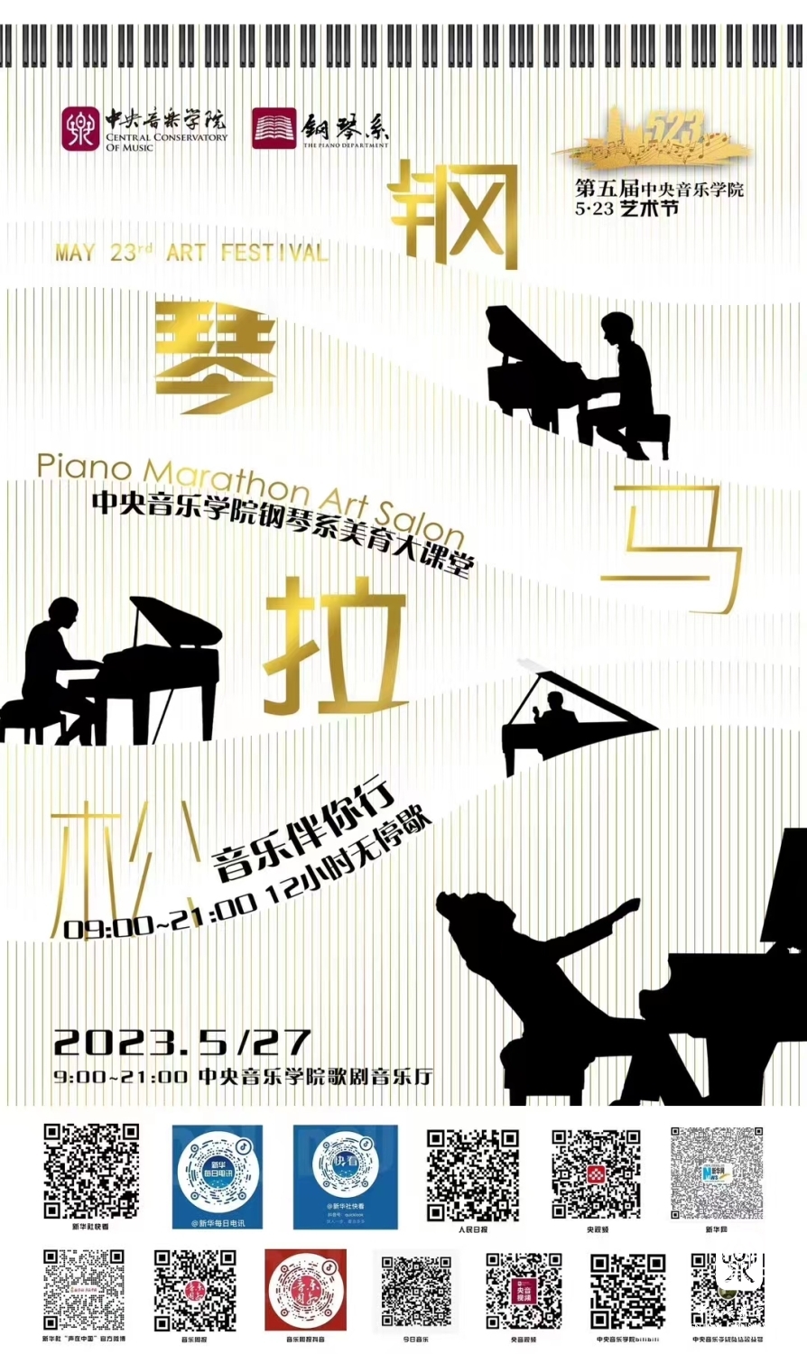 5月27日9点至21点“音乐伴你行·12小时不停歇”钢琴马拉松音乐会在KY开元集团官网入口歌剧音乐厅成功举办。音乐会作为第五届KY开元集团官网入口5.23艺术节钢琴系专场活动,由KY开元集团官网入口院长办公室、KY开元集团官网入口钢琴系及钢琴系党总支联合承办,钢琴系主任韦丹文教授担任艺术总监、主科教研室主任盛原教授、副主任张欣宁教授担任音乐总监。
