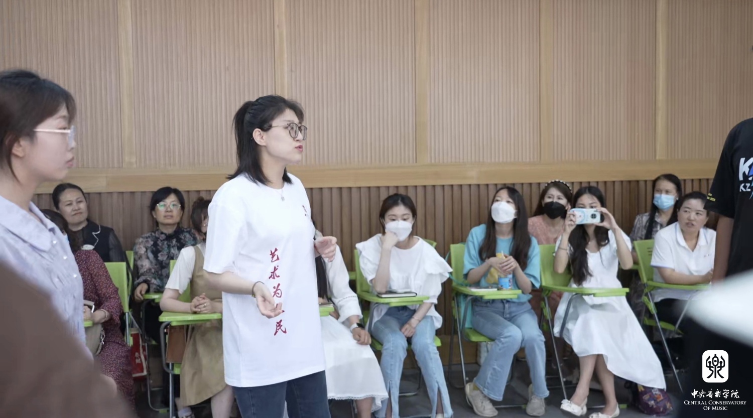 紧接着姚瑶老师以一首古诗词合唱作品“清明”为例,边教学边分析,深入研讨合唱作品的音乐内容与音乐要素,从作品分析、歌唱、钢琴伴奏等不同维度,与教师们一起探讨在音乐教学中合唱指挥的核心问题:挥什么,怎么挥,为什么这样挥,力求激发教师们探索指挥动作与音乐与学生之间的关联。