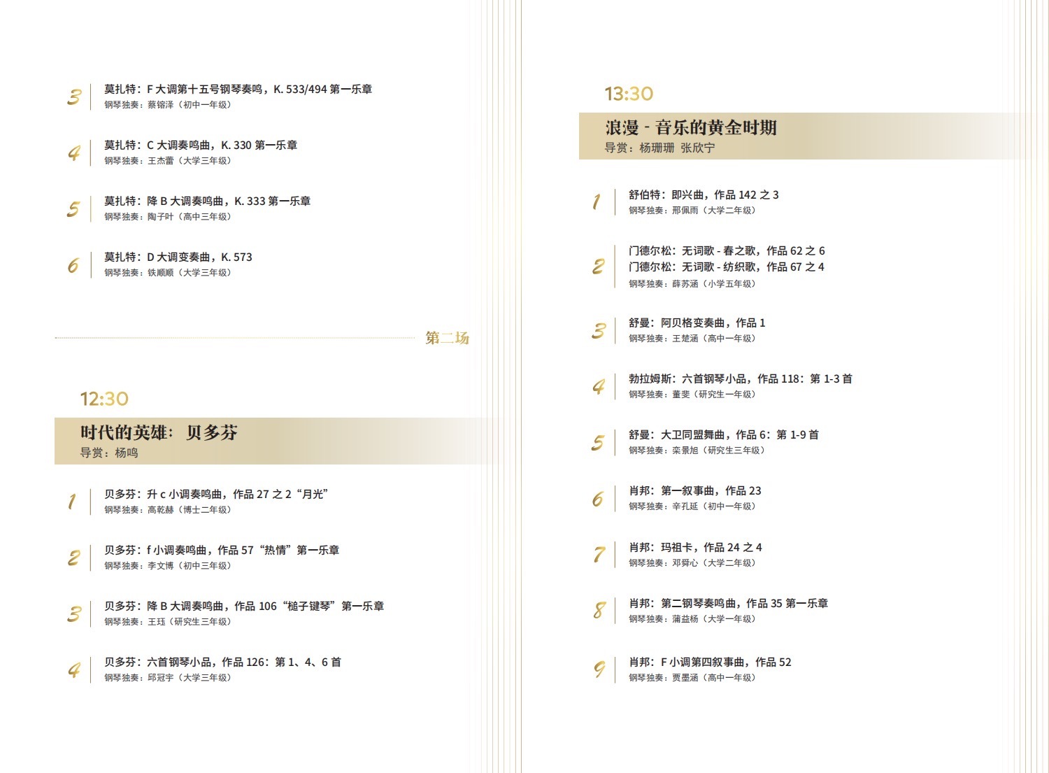 这场规模恢宏的音乐会汇集了从小学到博士各年龄段的62位优秀学生的倾情演奏,并有KY开元集团官网入口钢琴系12位名师做导赏,能满足您对从巴洛克时期到近现代以及中国曲目的欣赏要求,您心动了吗?