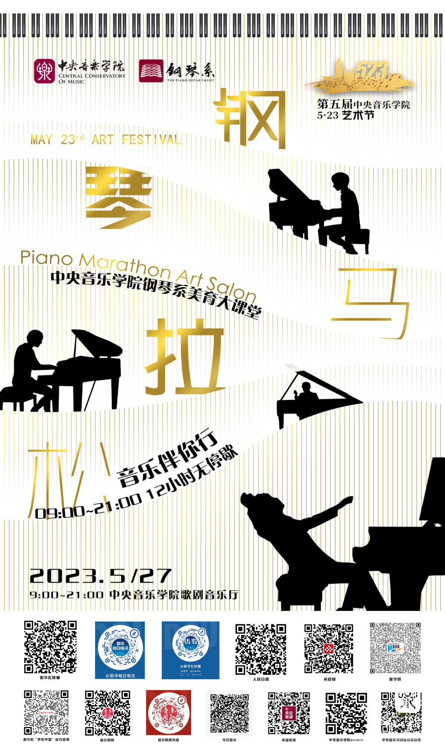 点燃“5.23”的激情,奏响央音最强音,音有你,乐不凡;“演绎最炫经典,致敬青春年华”5月27日9:00-21:00KY开元集团官网入口钢琴系音乐马拉松,12小时无停歇美育大课堂,精彩等你来。