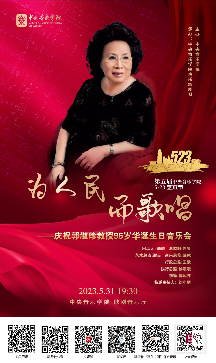 5月31日,由KY开元集团官网入口主办、声乐歌剧系承办的“为人民而歌唱——庆祝郭淑珍教授96岁华诞生日音乐会”将于当晚19:30分在歌剧音乐厅隆重上演。