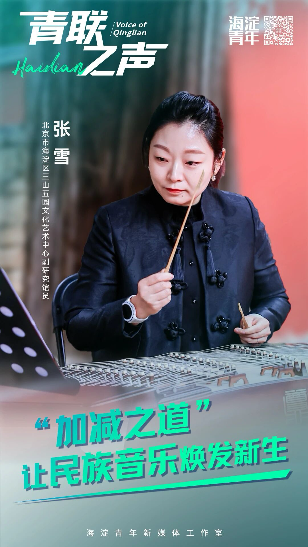作为主要推动者,张雪牵头申报的“中国民族音乐普及推广中心”成功落户海淀,成为京津冀地区唯一的国字号推广中心。以此为契机,她打造了“六个一”工作计划:组建全国对接工作小组、打造系列高品质演出、创办“民族音乐艺起来”分享会品牌、承办“云享国乐风华”全国民族音乐大赛、牵头成立全国推广中心联盟、组建民族音乐推广队伍。其中,“民族音乐艺起来”分享会登上《中国文化报》,在国家公共文化云平台播放量名列前茅;全国民族音乐大赛通过国家公共文化云面向3000多家文化馆征集作品,吸引了全国民族音乐爱好者踊跃参与。
