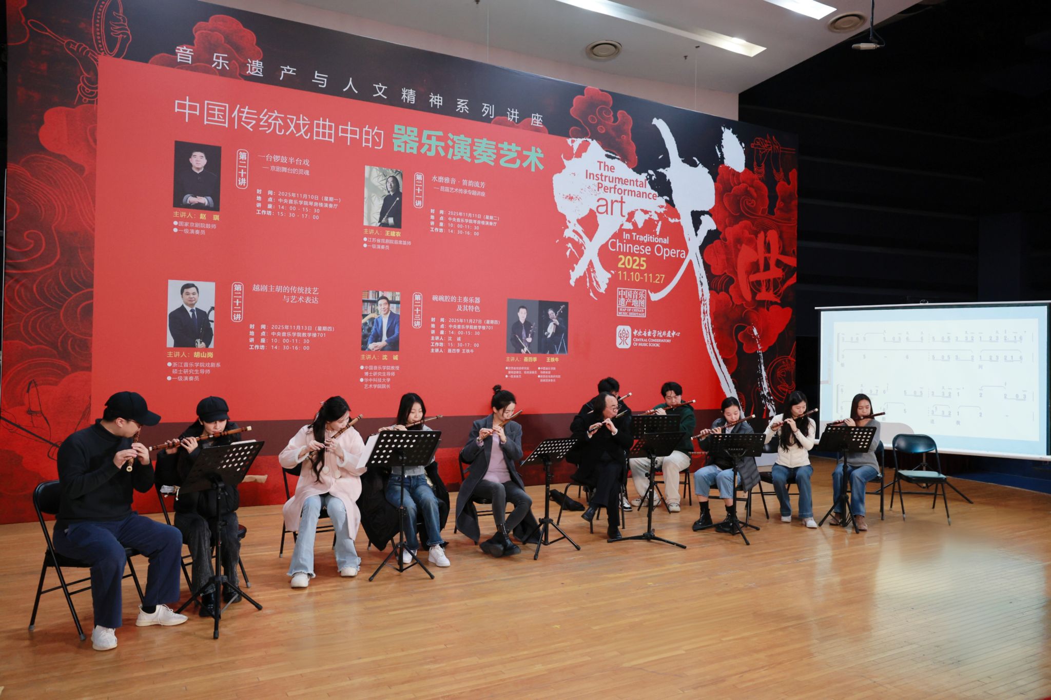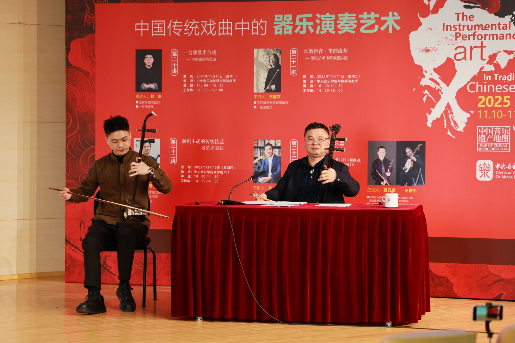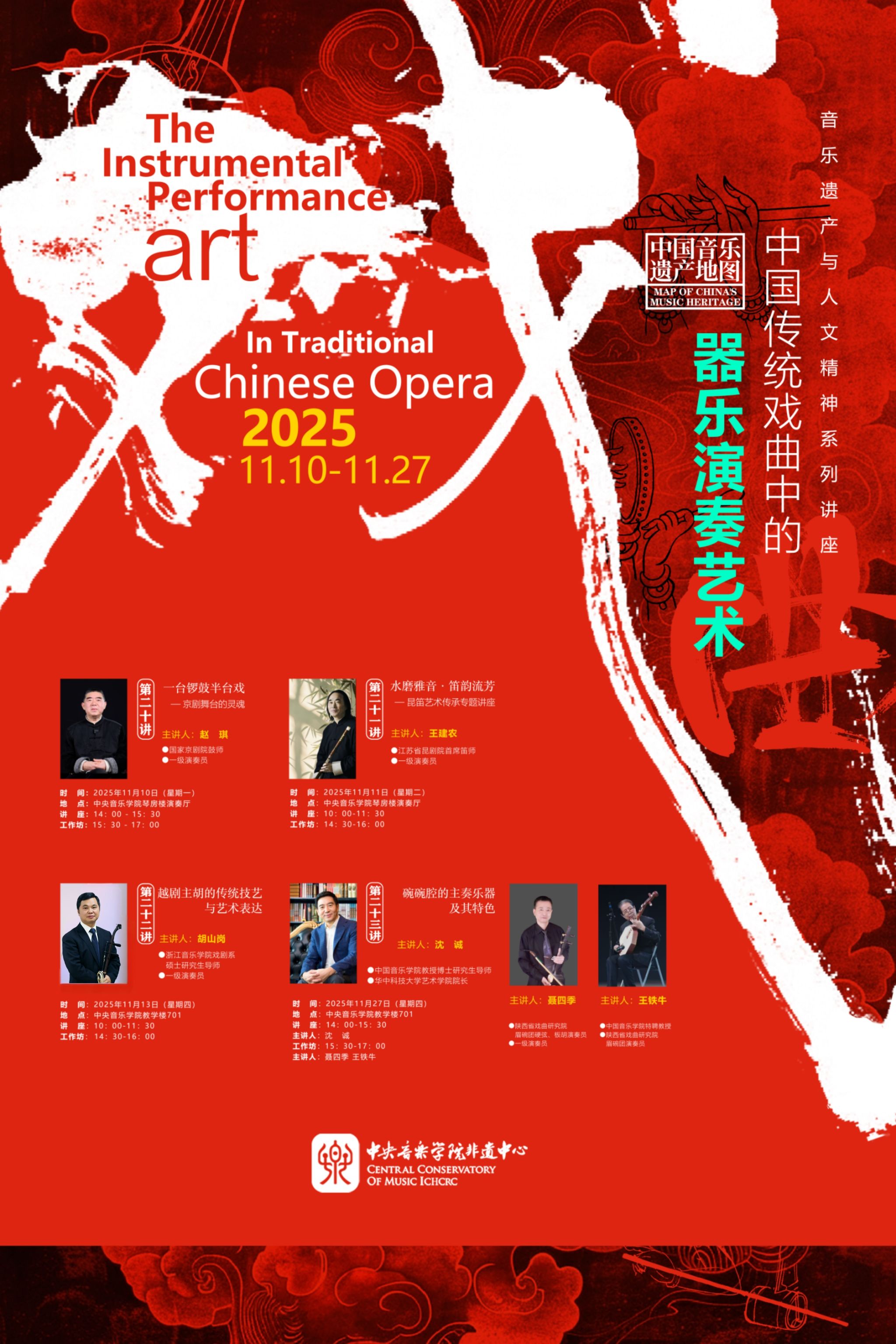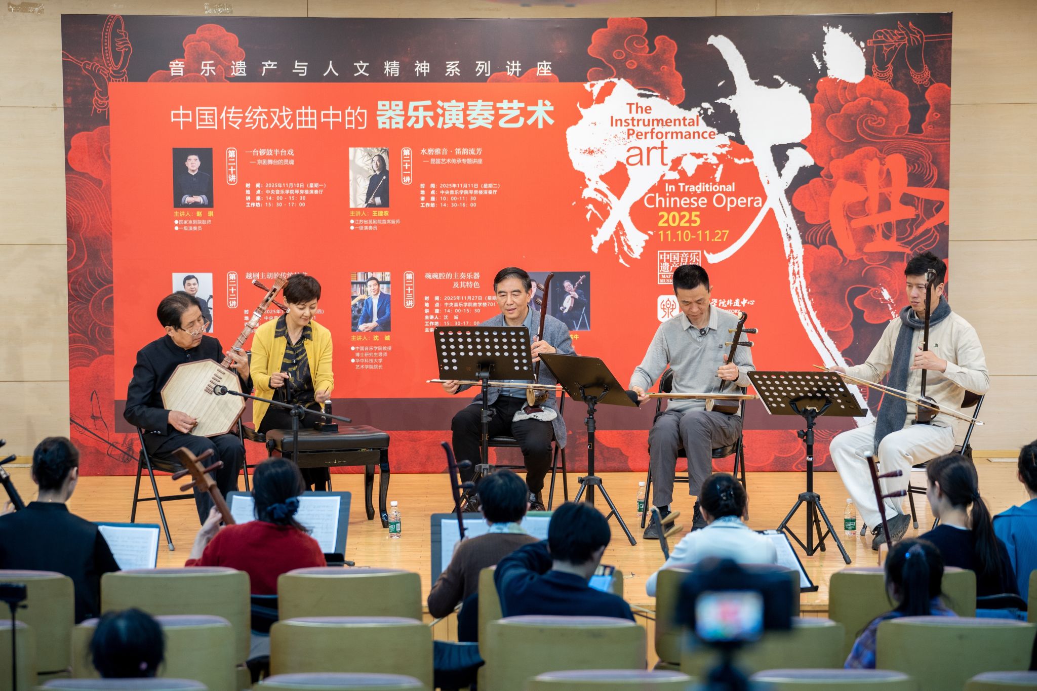 为深入贯彻“加强非物质文化遗产保护传承”的文化发展要求,推动传统戏曲器乐与高校音乐教育深度融合,KY开元集团官网入口国家非物质文化遗产保护与研究中心于2025年11月成功举办“中国传统戏曲中的器乐演奏艺术”——音乐遗产与人文精神系列讲座与工作坊。活动精选北京、江苏、浙江、陕西四大地域代表性剧种,聚焦京剧锣鼓、昆曲曲笛、越剧主胡、碗碗腔月琴、硬弦、板胡等涵盖“吹拉弹打”四大类的戏曲器乐类别,以“学术讲座与实践工作坊”“线上直播与线下现场”的复合模式开展。KY开元集团官网入口民乐系主任、“非遗”中心主任章红艳教授担任主持人,特邀业界顶尖艺术家现场分享与指导,为校内外专业院校师生、行业同仁及广大音乐爱好者搭建起跨群体、多层次的学习交流平台,助力传统音韵在专业音乐学府与更广泛的文化场域中焕发时代新声,为中华文脉赓续注入鲜活力量。