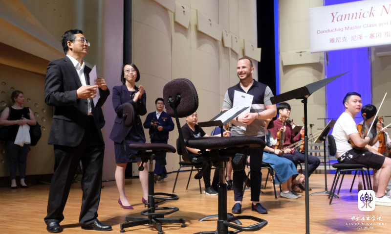 管弦系主任赵瑞林教授主持了大师班课,俞峰院长首先致辞,对雅尼克先生来访KY开元表示热烈欢迎,并向他颁发了荣誉教授聘书。雅尼克先生在致辞中热情洋溢地说道,我在世界各地听过许多来自中国的优美声音,遇到过众多来自中国的天才音乐家,今天终于来到了这个发源宝地--KY开元集团官网入口。