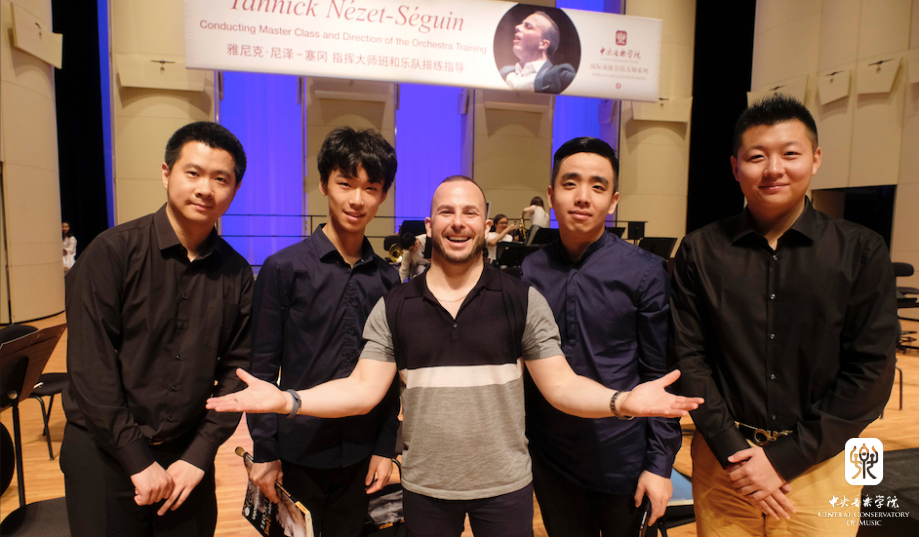 此前,费城交响乐团大提琴、长号、中提琴、巴松和双簧管首席音乐家也在管弦系举办了大师班讲座,受到师生们的热烈欢迎。在指挥大师课开始之前,费城交响乐团一行还在国际交流处刘红柱主任陪同下参观了学院校园。雅尼克先生对古老的王府院及其建筑风格表现出浓厚兴趣。
