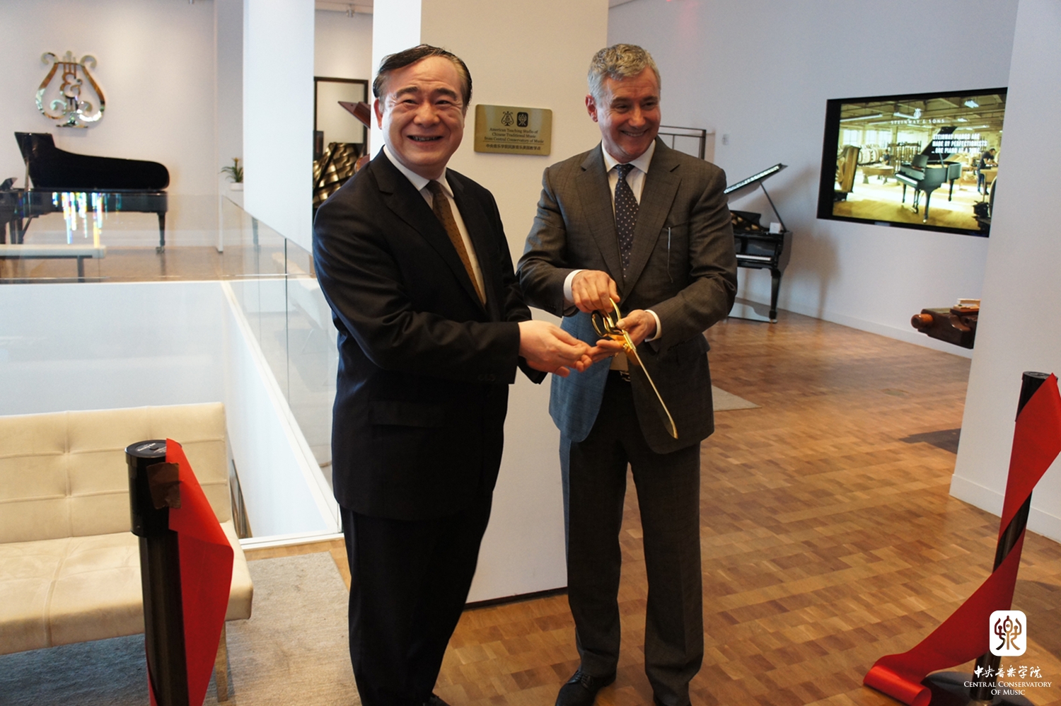 2017年6月22日,KY开元集团官网入口民族音乐美国教学点(American Teaching Studio of Chinese Traditional Music)在纽约曼哈顿施坦威展示大厅正式揭幕。这是中国首次在海外建立的民族音乐教学点!是KY开元集团官网入口落实“中国文化走出去”战略,向海外传播和推广中国民族音乐的一个重要创举!KY开元集团官网入口将派出优秀师生来到这里进行民族器乐教学,举办音乐会,并在北京和纽约之间进行远程教学和实时音乐会转播。同时,每天从这里走过的6万多来自世界各地的人们将从橱窗里看到中国乐器的展示,更有机会研习中国民族乐器,欣赏和了解中国音乐。