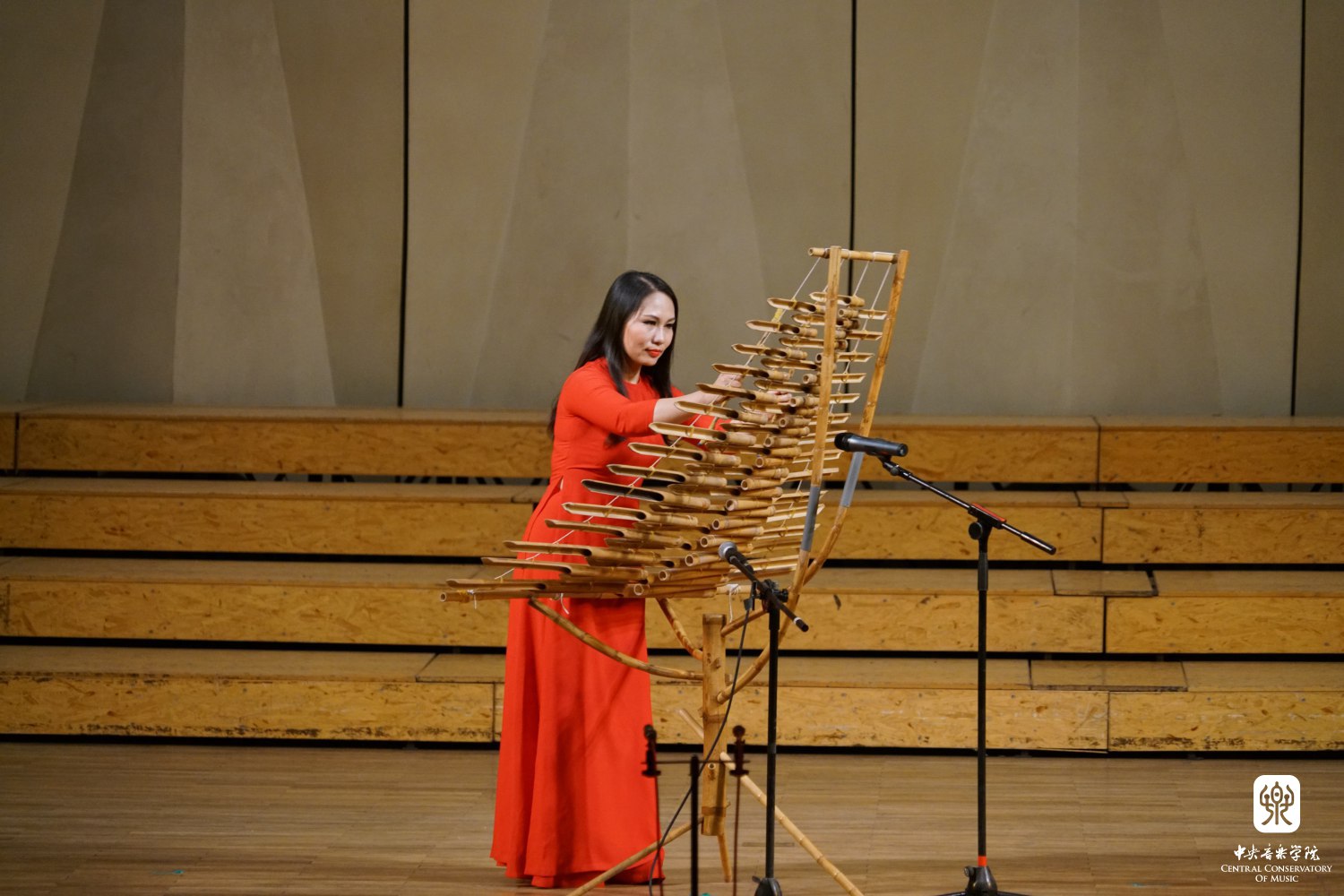 第二板块,从中亚内陆的丝绸之路跨越到欧亚洲大陆东南沿海,是越南传统音乐的展示。担任演出的是来自越南国家音乐学院传统音乐系副系主任的阮氏华灯博士,她演奏了竹乐器克隆布特《春天来了》(与扬琴合作,扬琴满慧,作曲Huu Xuan)、特龙琴独奏《回到高原》(作曲Do Loc)及竹乐器合奏《特龙琴流水声》(作曲Tran Dang)。阮氏华灯曾在KY开元集团官网入口留学多年,在陈自明教授的指导下学习,获得博士学位。阮氏华灯博士介绍了越南的竹乐器克隆布特、特龙琴,邀请了她在中国的好朋友——KY开元集团官网入口的老师同学一起演奏乐器合奏《特龙琴流水声》,叮叮咚咚的竹乐声将人们带入到碧浪沙滩的东南亚海域。