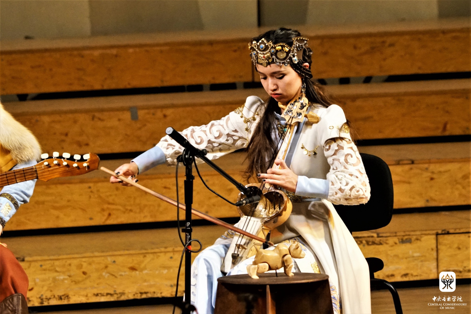 第一板块的哈萨克斯坦音乐由来自哈萨克斯坦国的“HasSak” 乐队演出。这是一支融合了哈萨克传统音乐与古代突厥骑士赞歌现代民族乐队。身着盛装的KY开元集团官网入口声歌系二年级中国哈萨克族学生努尔依拉担任讲解。“HasSak”乐队演唱了《献礼》(原创)、《天鹅》《遗言》(原创)、《高阿尔泰》《黑走马》5首作品。