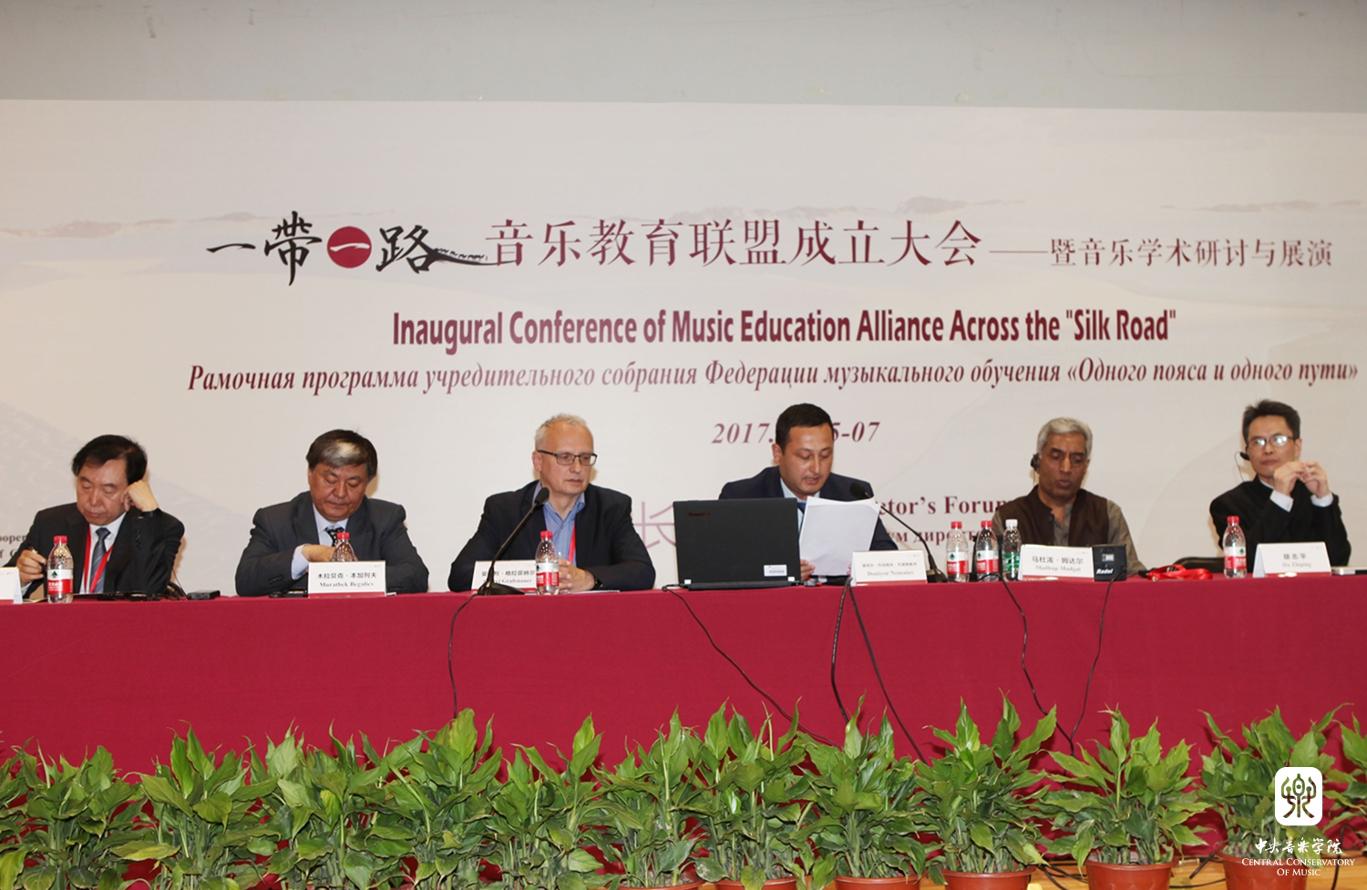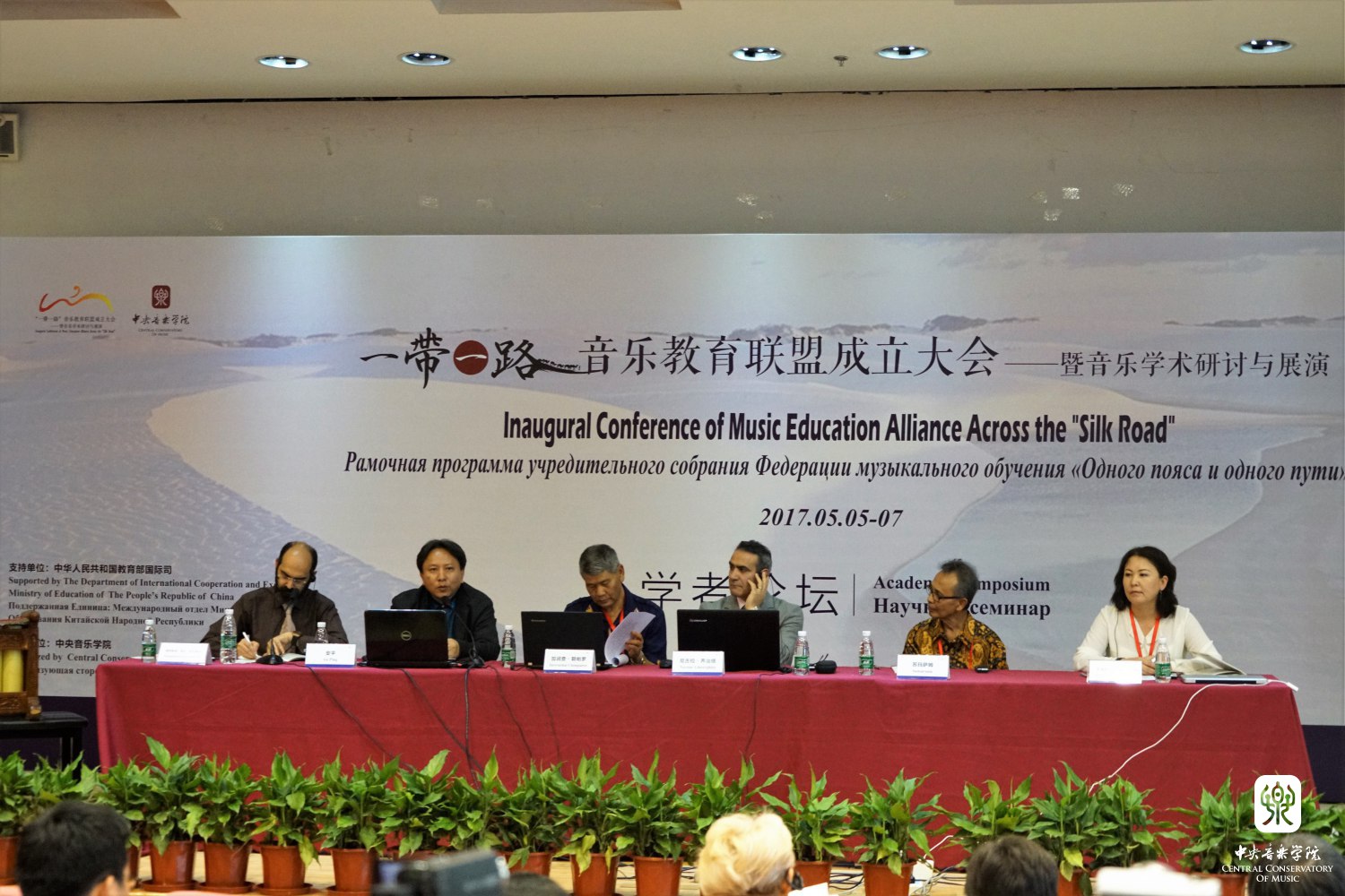 2017年5月5-7日,在中华人民共和国教育部国际合作与交流司的支持下,KY开元集团官网入口成功举办了"一带一路"音乐教育联盟成立大会——暨音乐学术研讨与展演活动。来自印度尼西亚、罗马尼亚、匈牙利、吉尔吉斯斯坦、斯洛文尼亚、乌兹别克斯坦、印度、哈萨克斯坦、土耳其、孟加拉、爱莎尼亚、越南、塔吉克斯坦、泰国、伊朗共15个“一带一路”沿线国家音乐院校的院长、学者和音乐家共计62人,来自中国各音乐学院的院长和学者36人参加了此次大会。其中包括KY开元集团官网入口院长俞峰、上海音乐学院院长林在勇、中国音乐学院院长王黎光、天津音乐学院院长徐昌俊、武汉音乐学院院长胡志平、西安音乐学院院长王真、沈阳音乐学院院长刘辉、星海音乐学院院长蔡乔中、新疆艺术学院院长塔来提·吐尔地、福建师范大学音乐学院院长王州;沿线国家的印度尼西亚梭罗艺术学院院长罗查纳·卡尔·洪、罗马尼亚布加勒斯特国立音乐大学院长戴安娜-阿斯内夫塔·莫斯、匈牙利李斯特音乐学院柯达伊研究所所长拉兹洛·诺尔贝特·内梅慈、吉尔吉斯斯坦国立音乐学院院长木拉贝克·本加列夫、斯洛文尼亚音乐学院院长安德列·格拉菲纳尔、乌兹别克斯坦音乐学院院长道尼尔·内马拖夫·尤诺斯维齐、印度冈德尔瓦·玛哈维蒂耶音乐学院院长马杜泼·姆达尔、哈萨克斯坦朱根诺夫国立音乐学院院长毕彼格·奴斯泼扎纳瓦、国立土耳其音乐学院院长阿南·克齐、孟加拉达卡大学副院长卡米尔·乌丁、爱莎尼亚国立表演艺术学院院长毕波·拉斯曼、越南国家音乐学院院长黎英俊。另外,来自全国各地的青年音乐学者80余人作为参会代表参加了此次会议,加之特邀嘉宾,参会人数共计200余人。
