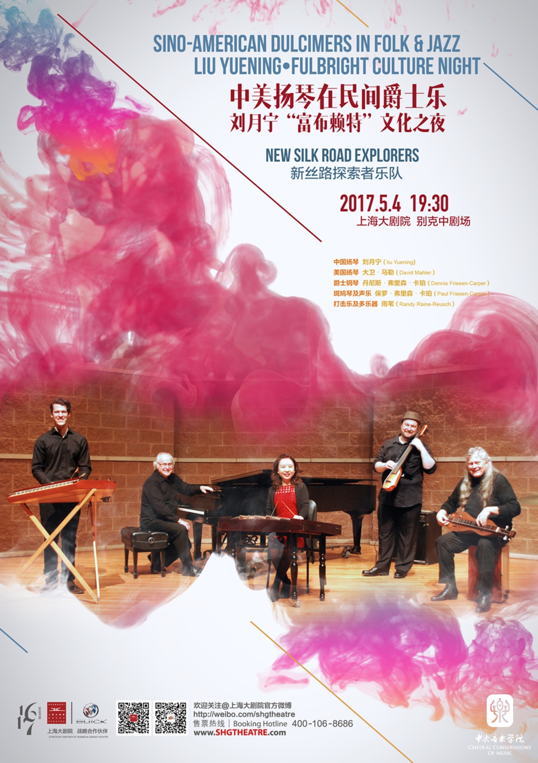 “新丝路探索者”乐队先后在KY开元集团官网入口歌剧音乐厅、上海大剧院、琴台音乐厅、青岛大剧院举办了4场专场音乐会,与观众分享了9首前沿作品——《恋舞》《蓝调•康定情歌》《双仙漫舞》、《爵士•茉莉花》《无题》《律动的紫竹》《感•动》等中美经典及民间与爵士乐融合曲目,以及为此次巡演特约的两首世界首演新作《琴弦和鸣》《二泉听月》,场场赢得热烈掌声,产生强烈共鸣。刘月宁教授在中美音乐文化交流领域的贡献,得到美国驻华使馆新闻文化参赞安妮·格里姆斯的高度赞扬,她认为:刘教授是中美两国高端文化交流“富布赖特”项目几十年来首位表演艺术学者,在中美人文交流领域所发挥的积极作用和为“富布赖特”文化的传播做出了突出贡献。对于中西文化交流的重要性,俞峰院长在首场音乐会寄语中说道:“毫无疑问,中国文化需要与世界文化交流,吸收外来文化的精髓是中国文化延绵发展的重要推动力,而世界文化也需要中国文化的滋养与补充。” 郭淑兰书记在首场音乐会致辞中,充分肯定了此次分享之旅对于中外音乐文化、传统与现代艺术的结合所起到的积极推动作用,在中美合作发展历史新时期,通过中美扬琴及多种中西乐器的即兴对话,在“琴弦和鸣”中重拾音乐本真,奏响音乐文化交流的新篇章。