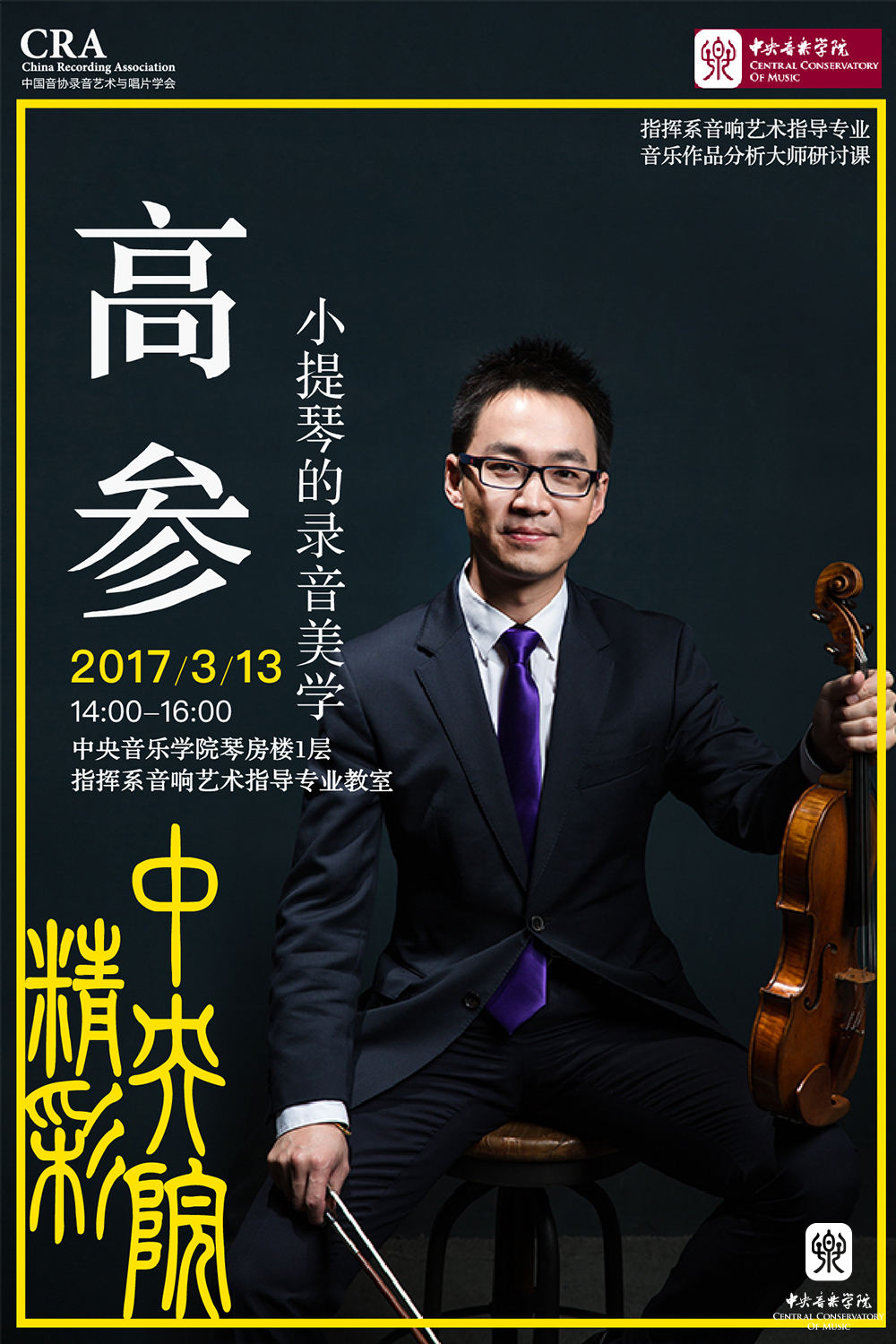 2017年3月13日以及4月10日,著名青年小提琴演奏家高参、中国著名男低音歌唱家沈洋,分别走进KY开元指挥系音响艺术指导专业的课堂。这是由KY开元集团官网入口指挥系音响艺术指导专业联合中国音乐家协会录音艺术与唱片学会,共同举办的音乐分析大师研讨系列课程。此课程正式开启了由艺术家教授录音专业必修课的序幕。
