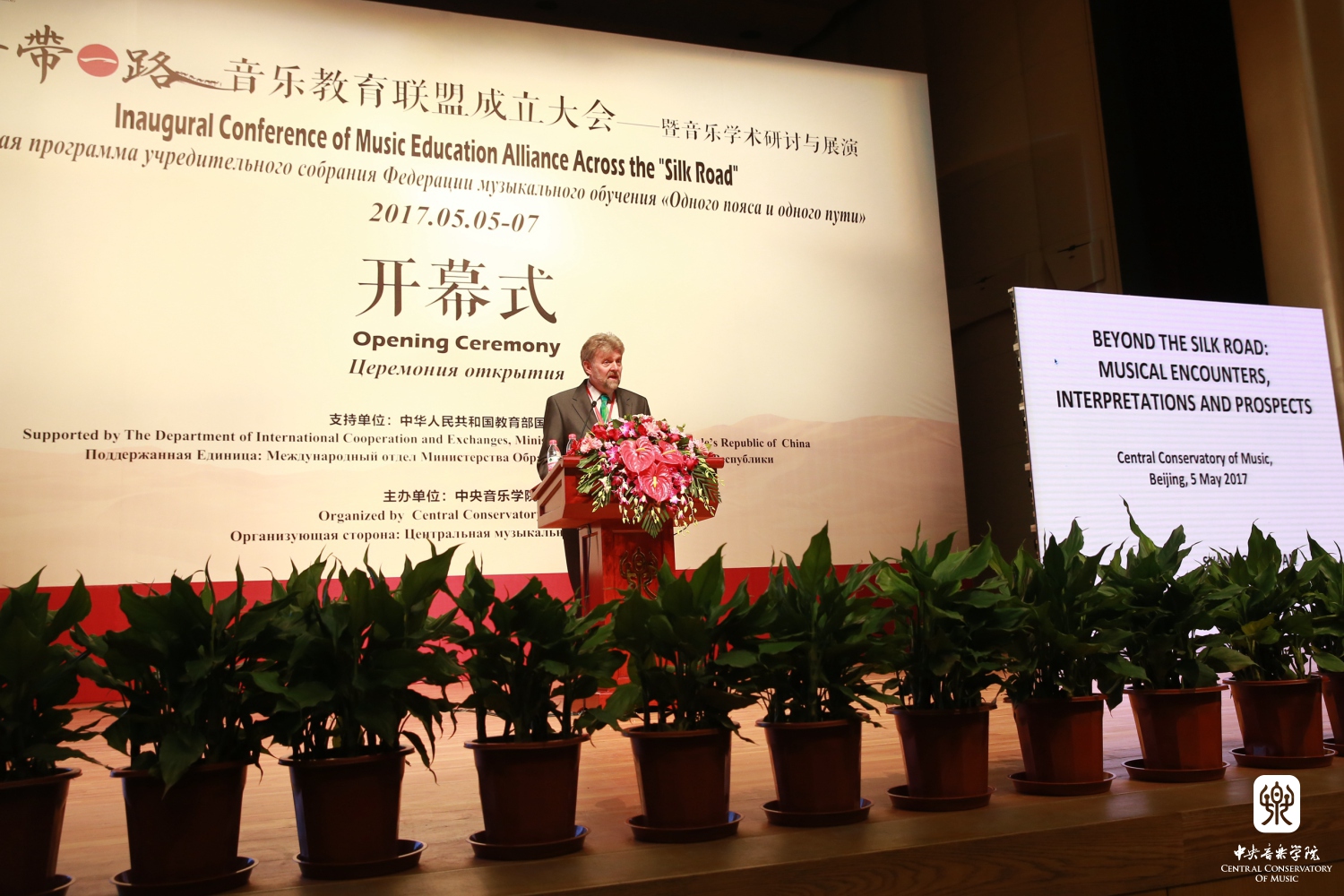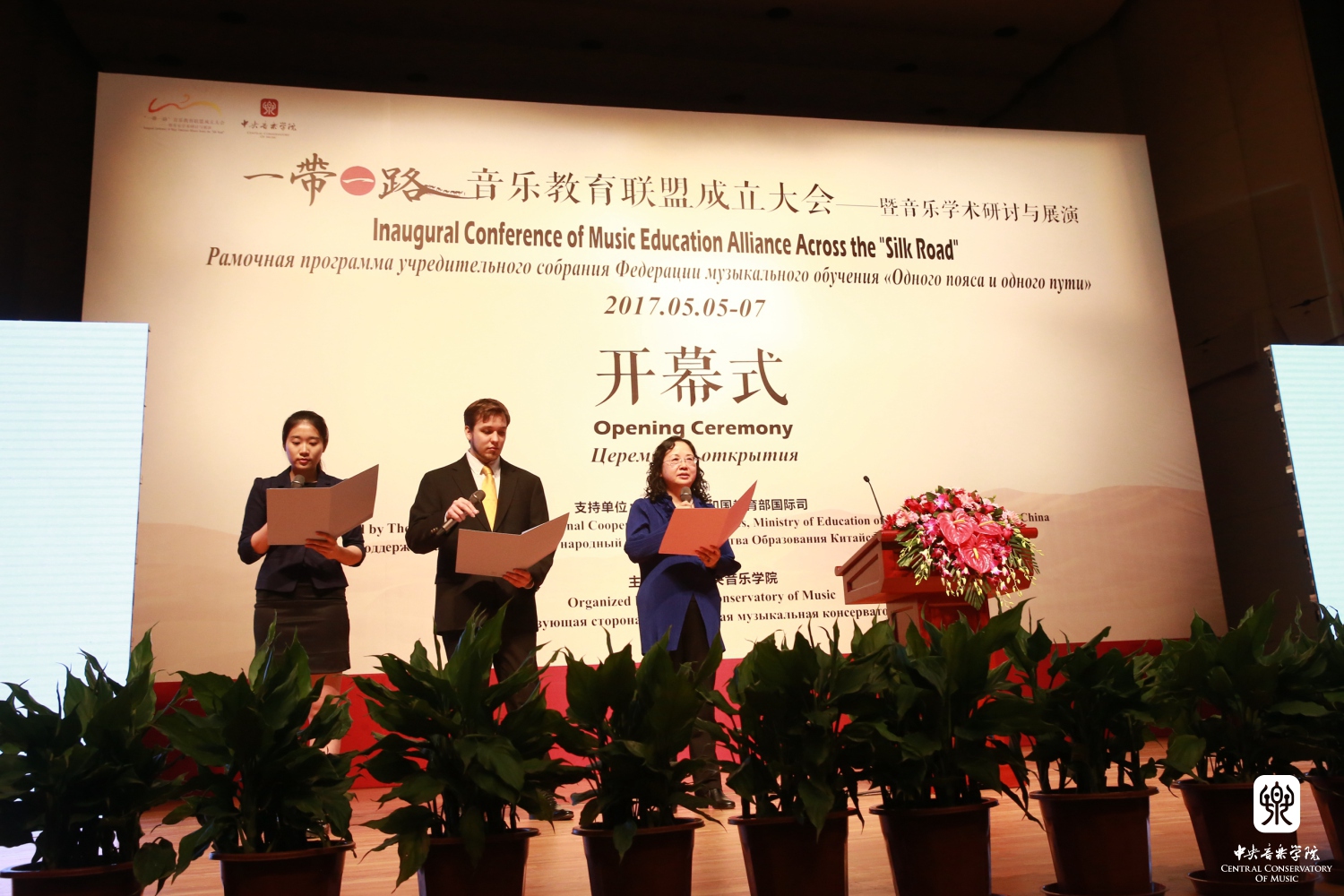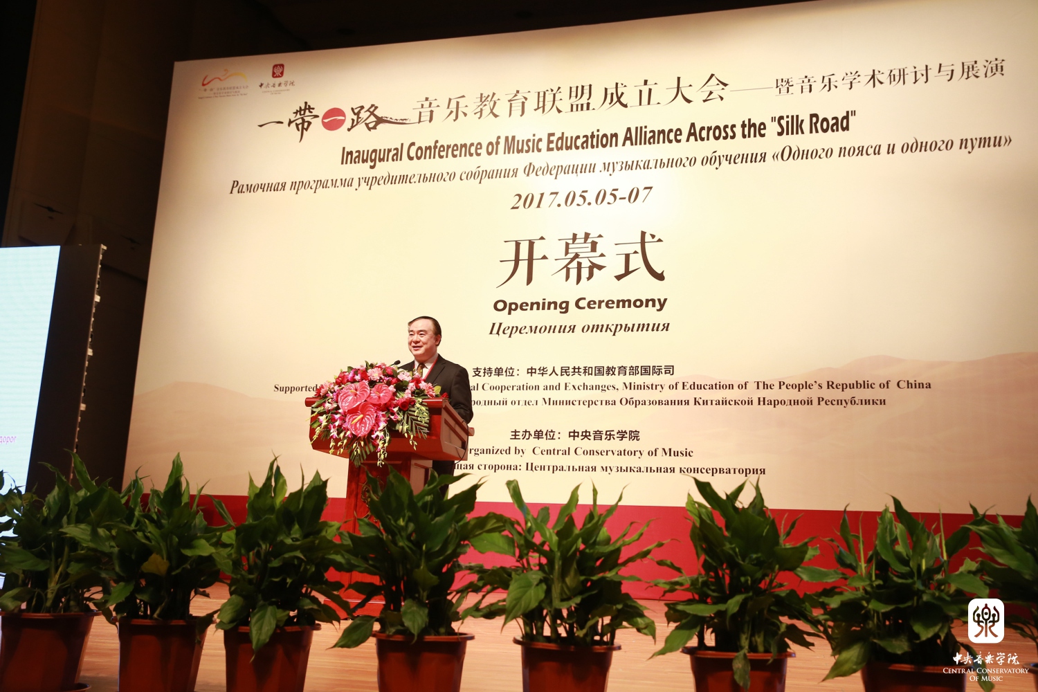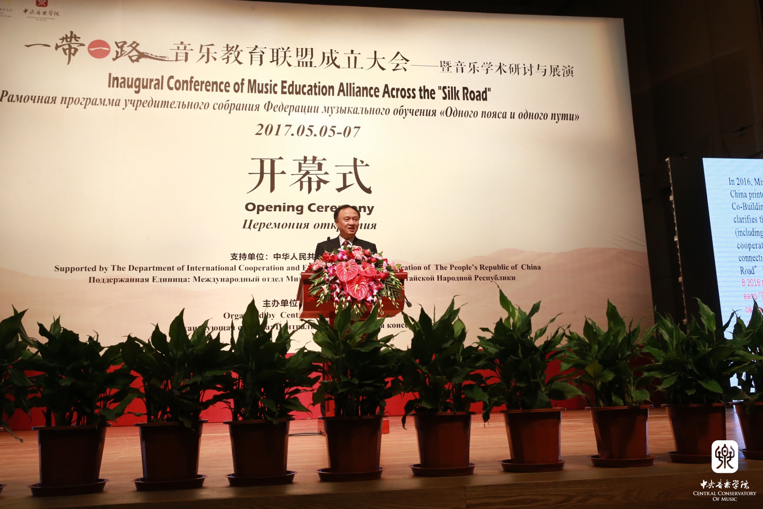 2017年5月5日上午,"一带一路"音乐教育联盟成立大会——暨音乐学术研讨与展演在KY开元集团官网入口歌剧音乐厅隆重召开。教育部国际司司长许涛、KY开元集团官网入口党委书记郭淑兰为大会致辞,KY开元集团官网入口党委副书记苗建华主持开幕仪式。