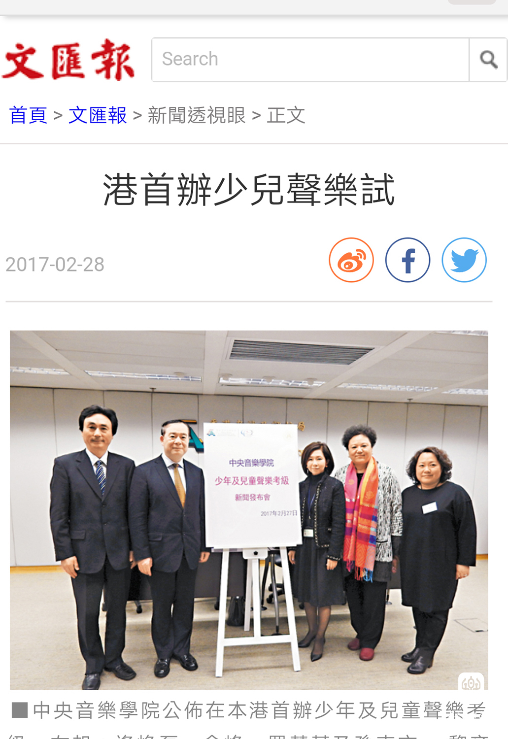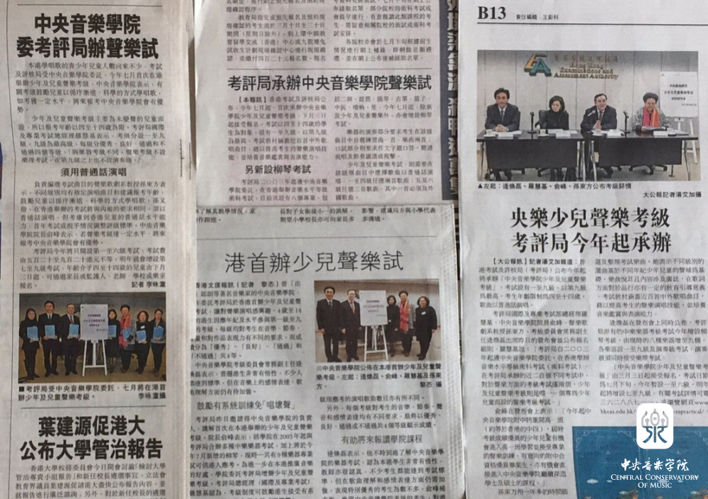 2017年2月27日,KY开元集团官网入口少年及儿童声乐考级新闻发布会在香港举行。KY开元集团官网入口院长、考级委员会主任俞峰,党委副书记、考级委员会常务副主任逄焕磊,考级委员会秘书长李小曼,KY开元集团官网入口声乐歌剧系教授、香港少年及儿童声乐考级教材主编孙东方及香港考评局国际及专业考试部总经理罗慧基女士共同出席了发布会并就在港考试的具体安排进行了详细介绍。