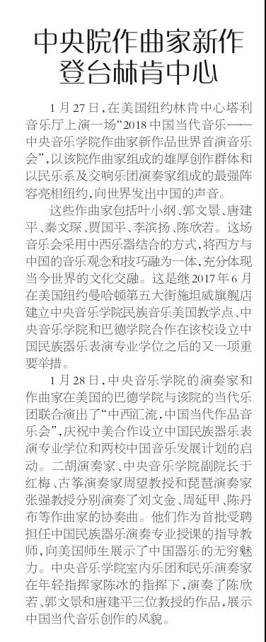 上一条:作曲系唐建平教授歌剧《拉贝日记》入围2018年国际歌剧大奖