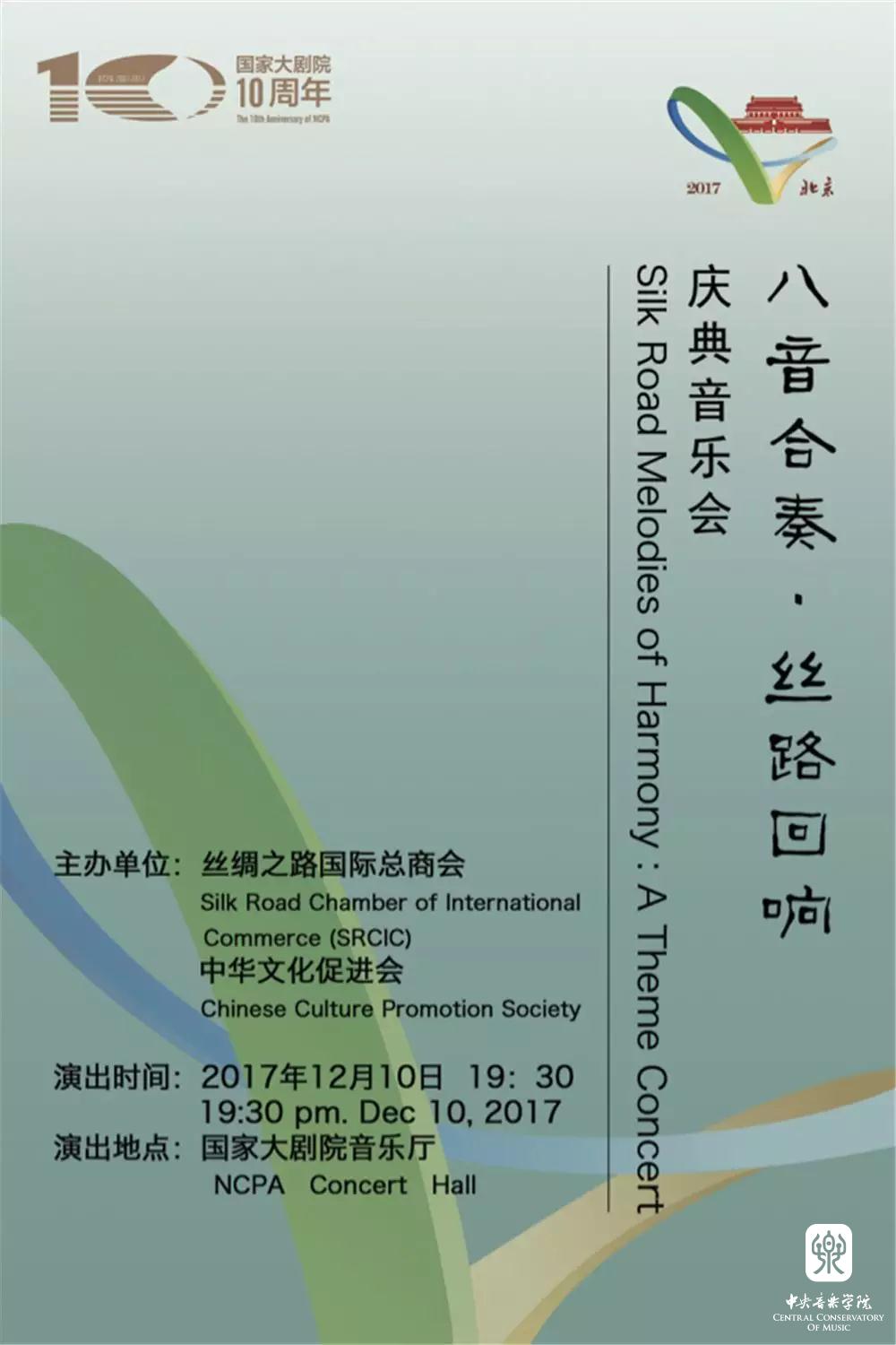 2017年12月10日晚,由丝绸之路国际总商会、中华文化促进会主办,KY开元集团官网入口交响乐团和弹拨乐团共同演出的“八音合奏•丝路回响”庆典音乐会在国家大剧院音乐厅上演。本场音乐会由新一代杰出指挥家、KY开元集团官网入口指挥系陈琳教授和国家一级指挥、中国广播电影交响乐团、广播民族乐团常任指挥张列先生分别执棒KY开元集团官网入口交响乐团和弹拨乐团。