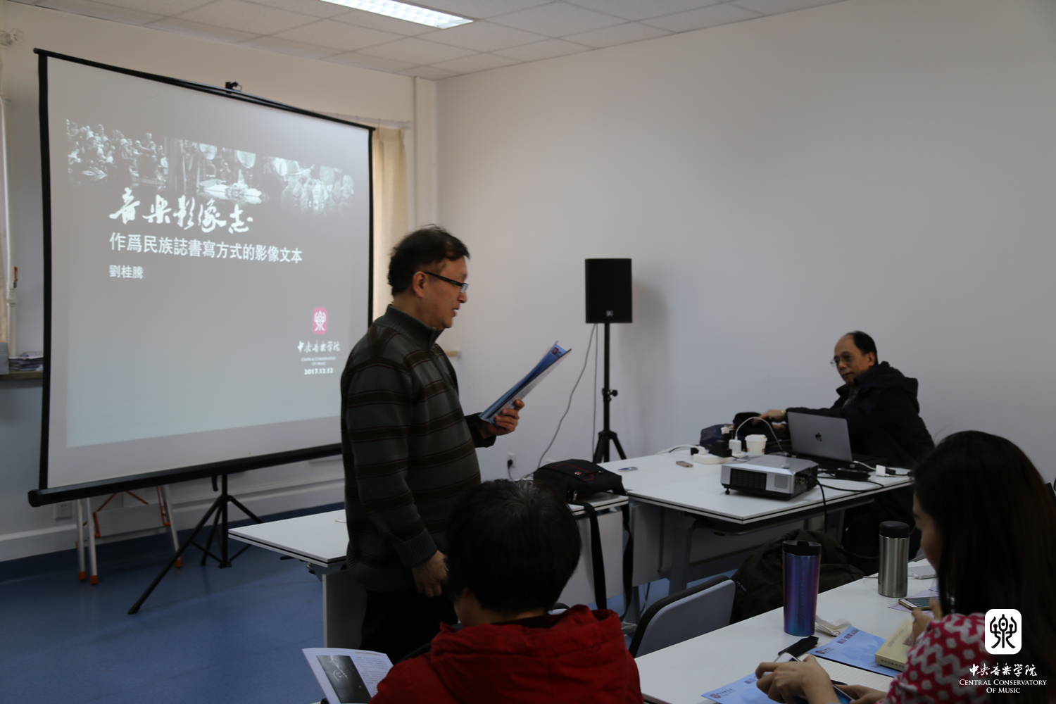 2017年12月12日至15日,由音乐学研究所主办的“前沿•探索”文化艺术论坛系列学术讲座在音乐学研究所会议室举行。本次文化艺术论坛由6场讲座组成,担任主讲的受邀专家学者分别是:上海音乐学院洛秦教授、上海音乐学院“生态音乐学团队”特聘专家刘桂腾研究员、中国艺术研究院音乐研究所张振涛研究员、中国社会科学院哲学所刘悦笛研究员、北京师范大学江怡教授,以及中国社会科学院文学研究所范子烨研究员。音乐学研究所所长贾国平教授、副所长宋瑾教授、副所长汤琼教授和音乐学系主任安平教授分别担任了相关场次讲座的主持人。音乐学研究所全体在站博士后、在所访问学者,以及院内外诸多专家学者、博士生、硕士生等参加了此次文化艺术论坛系列讲座活动。