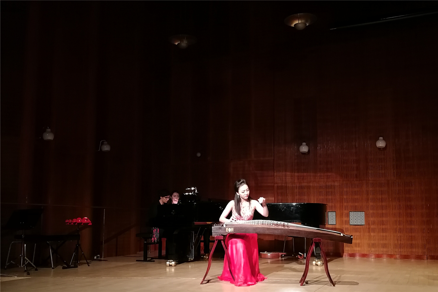 音乐会涵盖独奏、重奏等作品,琵琶、二胡、竹笛、古筝、扬琴、古琴交相辉映,并邀请了意大利籍钢琴演奏家Sara、旅欧小提琴演奏家张可函及丹皇手风琴研究生赵旭晨友情助演。《弹词韵》细诉吴语倜傥,《流水》寄托仰止情怀,《龙船》再现民俗风貌,另有《雪花与回忆》《秦土情》《孤烟直》《自由探戈》《敦煌》等中西合璧、风格各异的作品,各具特色,高潮迭起,引得丹麦听众阵阵掌声。音乐会结束,观众们纷纷上台对音乐家表示感谢与祝贺,近距离观察并尝试演奏中国乐器,进一步了解这些神奇的“中国声音”。