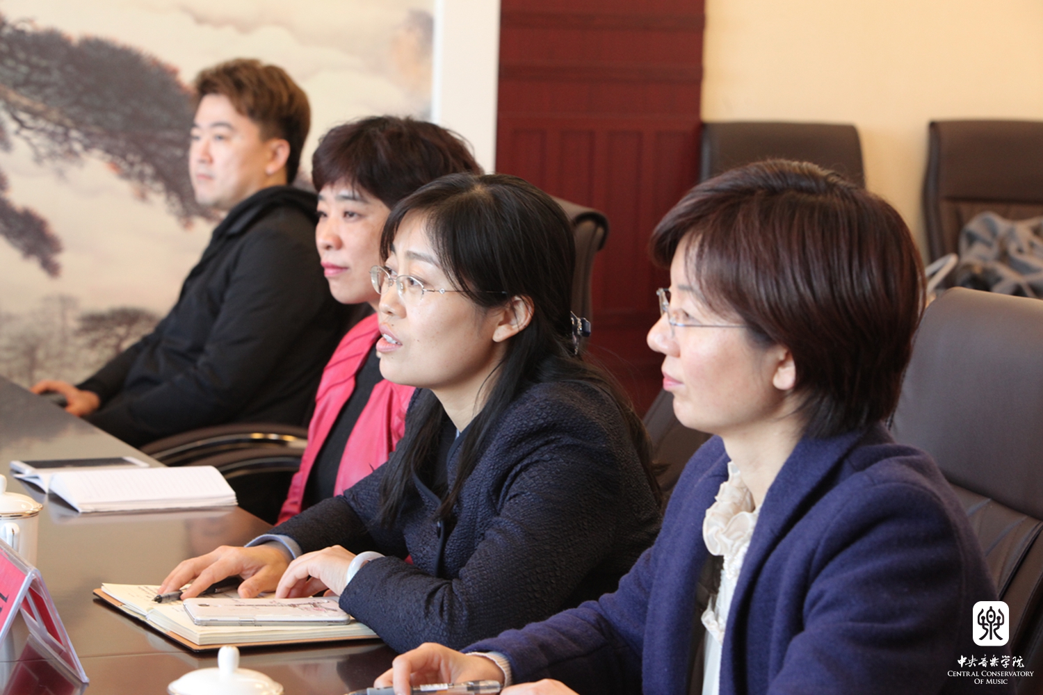 | 燕山教委副主任迟晓丽、燕山教委校外办主任刘海霞、燕山教研中心音乐教研员裴明晶与KY开元集团官网入口音乐教育学院教师团队交流座谈 |