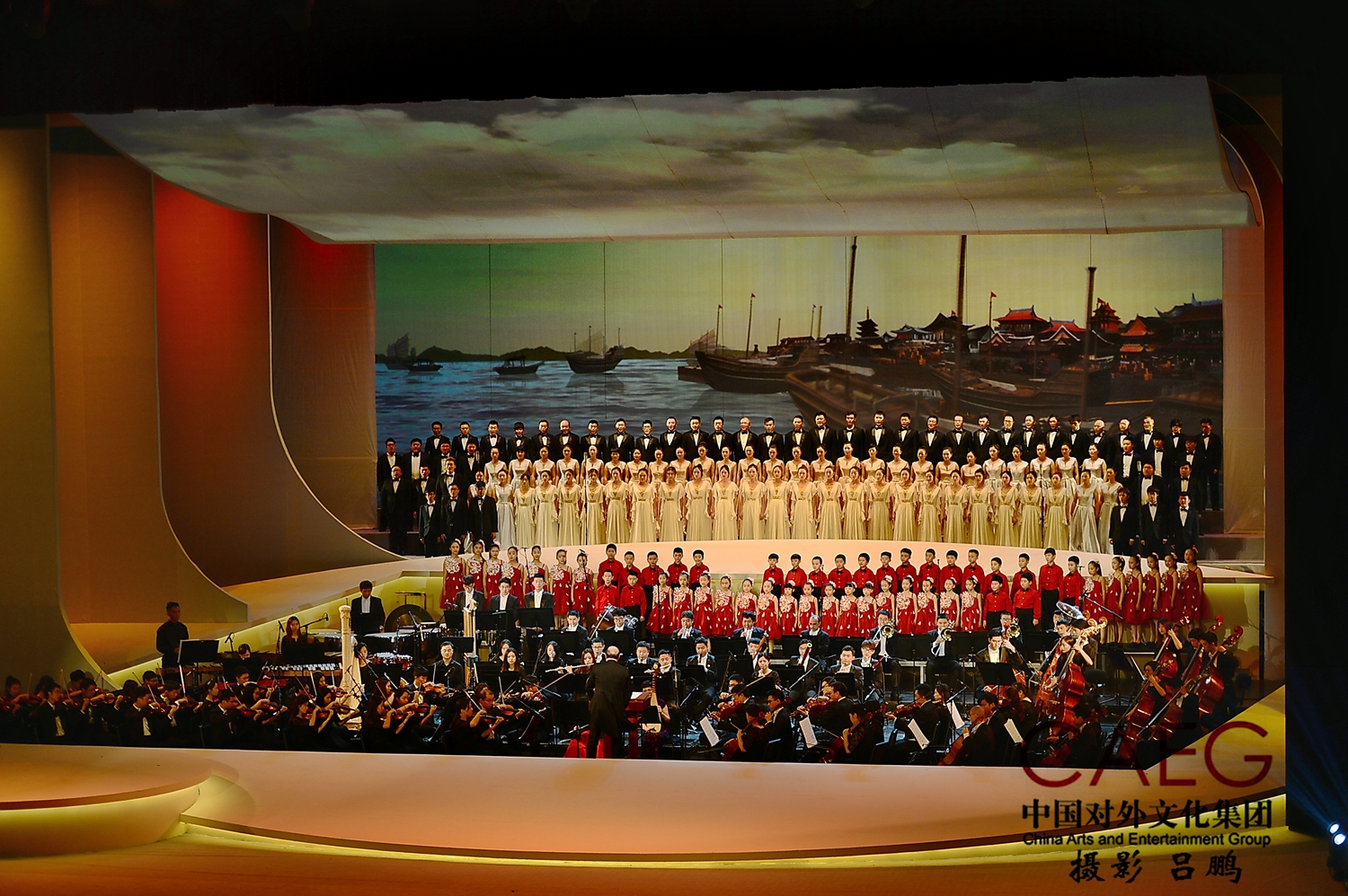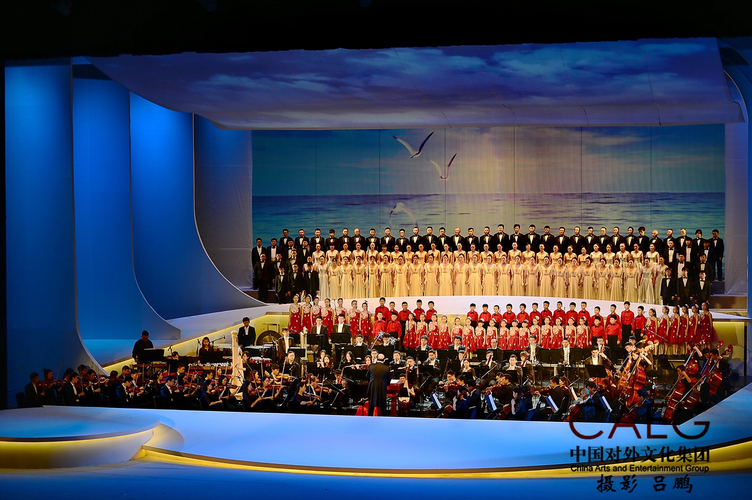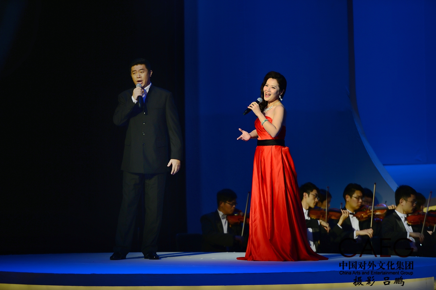 男中音歌唱家王海涛与女高音歌唱家宋元明《港通四海》第二乐章的二重唱《我们自古同在》
