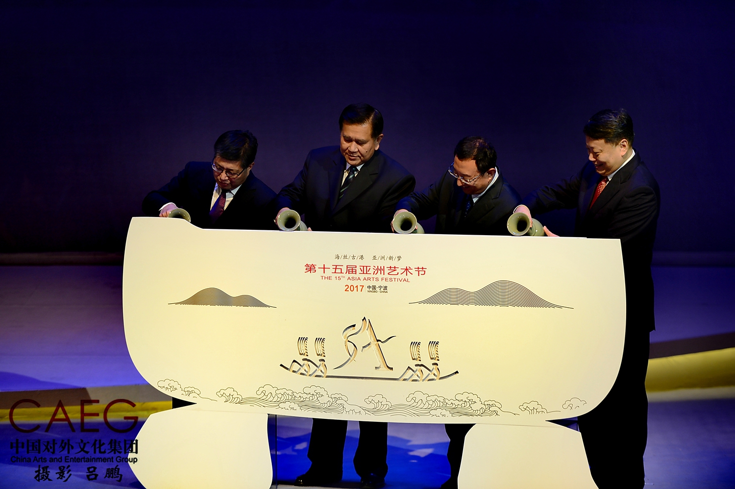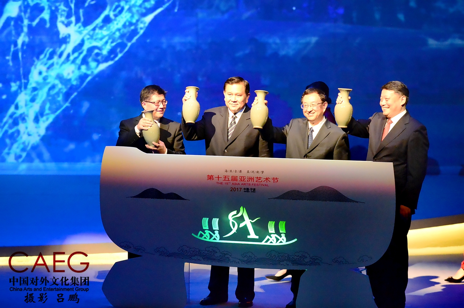 四位嘉宾上台为第十五届亚洲艺术节揭幕