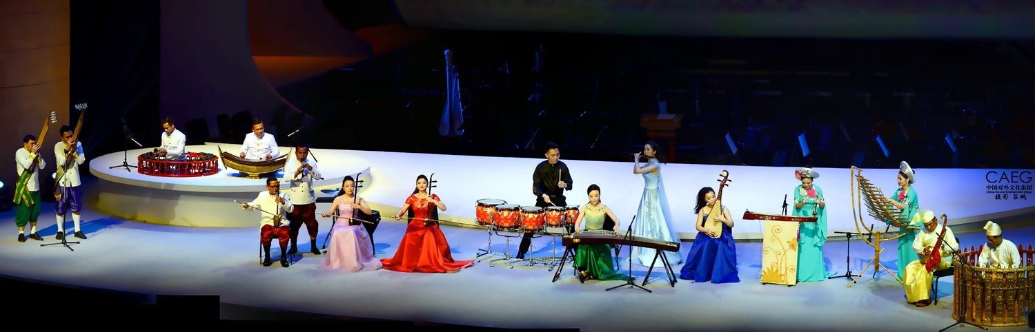 音乐总监安平教授专门为"澜-湄"合作组织即中国与东南亚的越南、老挝、柬埔寨、缅甸和泰国五国的的音乐家编创了《金蛇狂舞》回旋曲,该乐曲将聂耳原曲的"金蛇狂舞"从新进行了改编,在KY开元集团官网入口民乐队和所有国家乐手共同演奏的"金蛇龙舟"主题的基础上加入的各国名曲的演奏,音乐热情洋溢,充满着节日的欢腾气氛,具有浓郁的中国与东南亚特色,既展现了各国最具代表性的传统器乐音乐风采,同时又表现了"澜湄国家命运共同体"的密切联系,共同奏响友谊、和平、繁荣、发展的时代的新声。