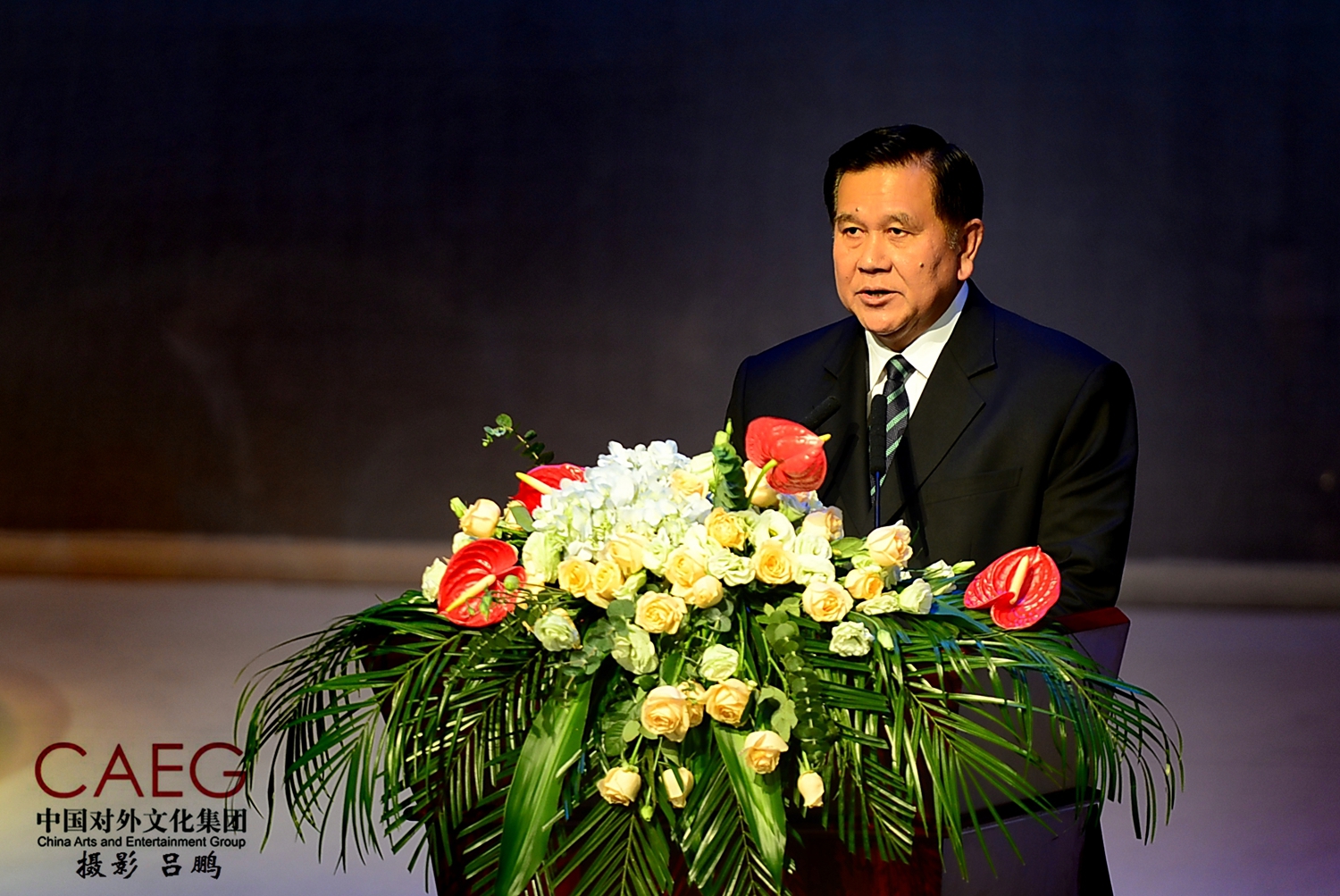 从左至右:浙江省副省长成岳冲;泰国副总理他那萨;中国文化部部长、第十五届亚洲艺术节组委会主任雒树刚;