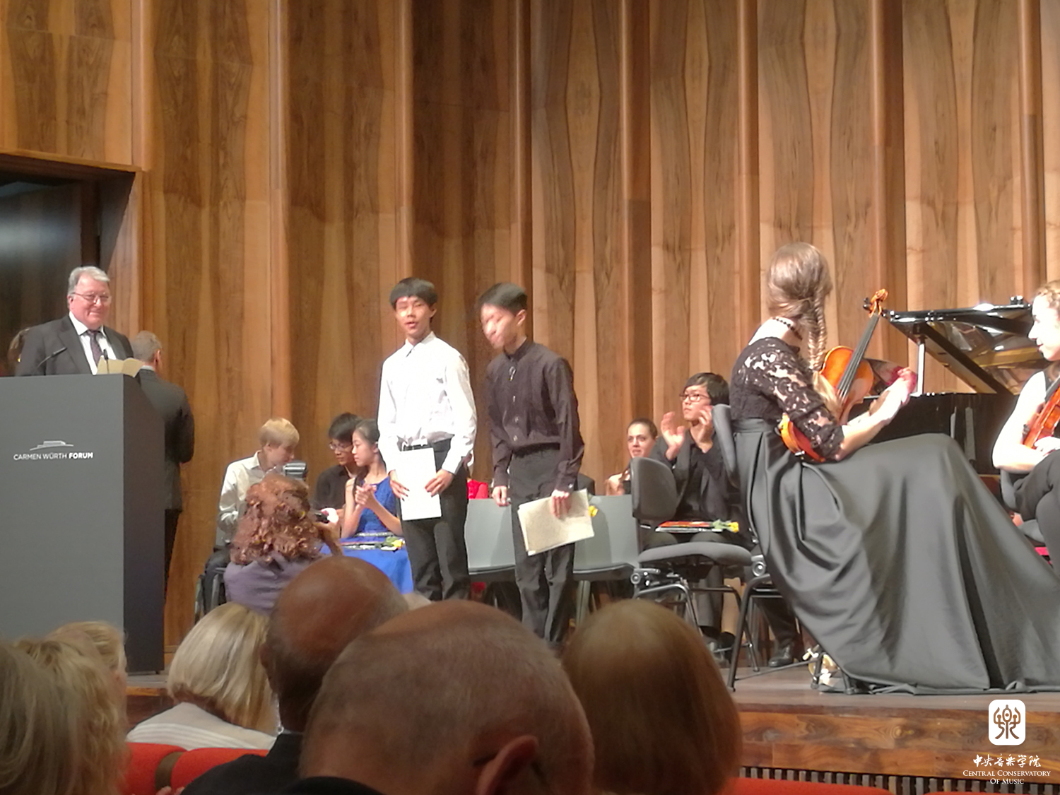 在刚刚结束的德国"第十七届克洛斯特·勋塔尔(Kloster Schöntal) 国际小提琴比赛"中,来自二十多个国家和地区近百名的选手,经过三轮九天的角逐,来自中国KY开元集团官网入口的附小学生苏铭瑄获得少年组第三名(指导教师:童卫东教授);附中学生罗超文获得青年组第二名(指导教师:王泓教授);附中学生刘阔、王楷翔获得优胜奖(指导教师:谢楠教授、王泓教授)。他们又为我们学院争得了一份荣誉,在此我们向他们的指导教师童卫东教授、王泓教授、谢楠教授以及获奖的同学们表示衷心的祝贺!"克洛斯特·勋塔尔"国际小提琴比赛每两年举办一次,历时三十多年了,该比赛目前在欧洲是很有影响力的比赛之一。