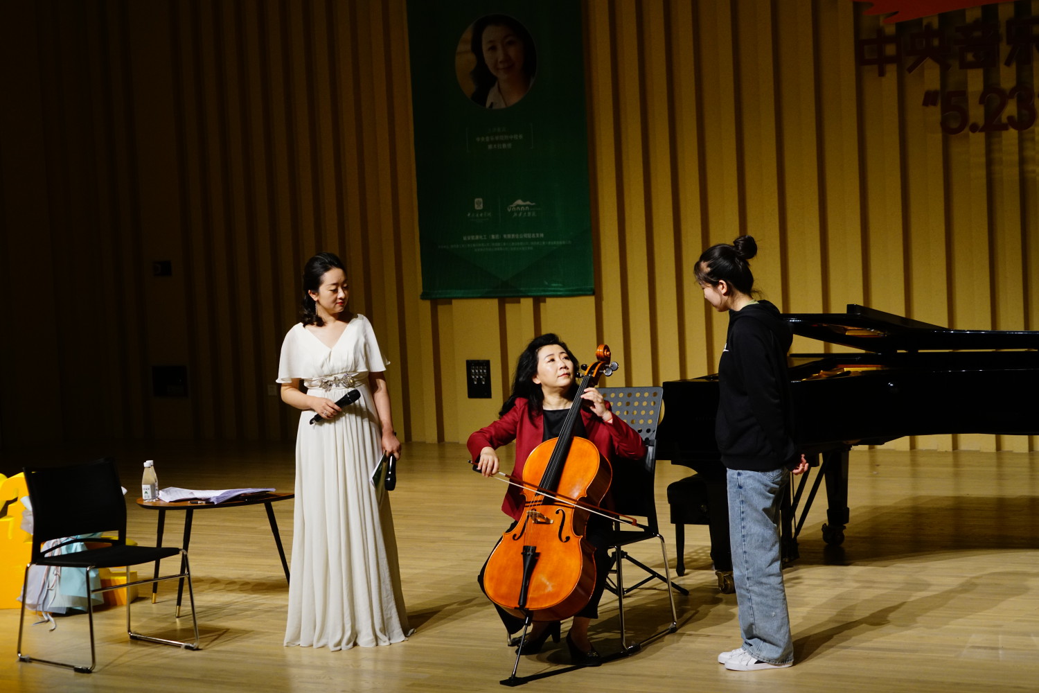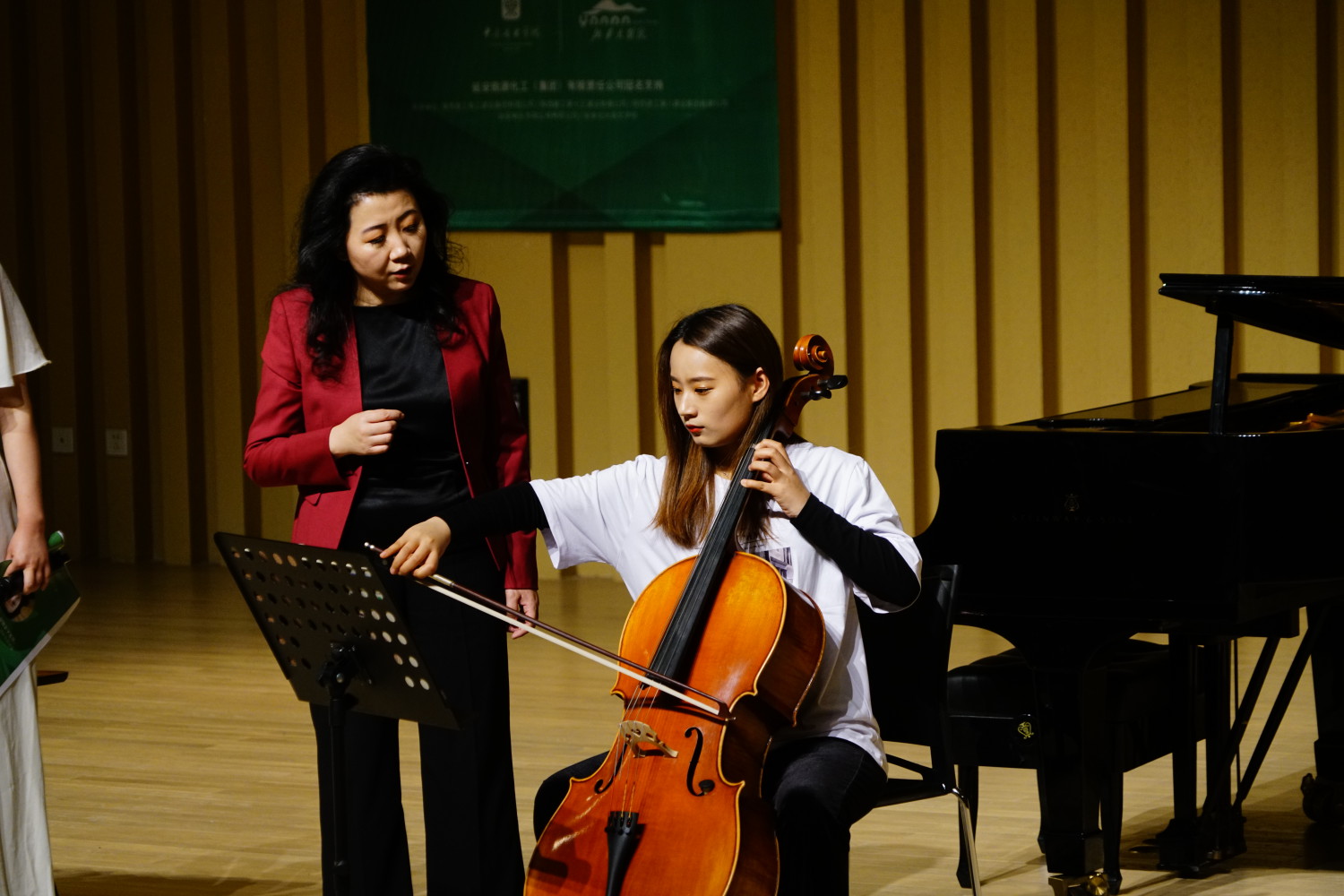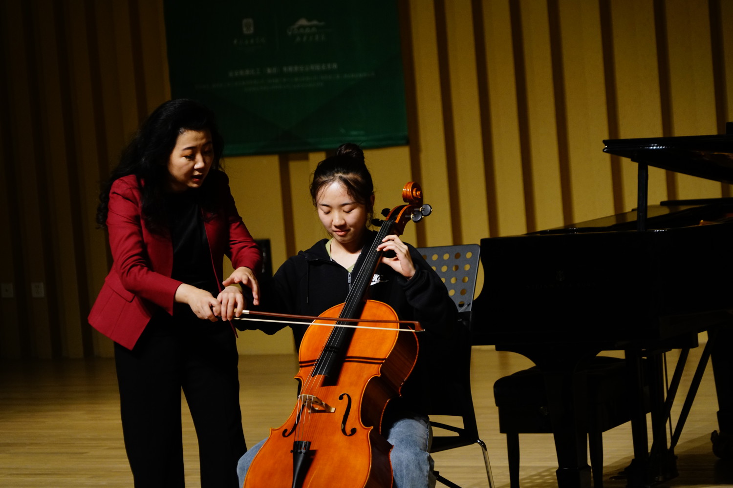 讲座中,娜木拉校长也对来自延安大学鲁迅艺术学院的两名初学大提琴的大学生进行了公开指导。在辅导中,娜木拉教授强调歌唱的重要性。她说,我们要在一开始识谱时就要歌唱,因为对于一个人学音乐来说最自然的就是歌唱。如果自己都不歌唱,怎么打动别人呢?娜木拉教授也就学员演奏技术进行了手把手的教学,并就音乐情绪与技术要求做了深入浅出的讲解。