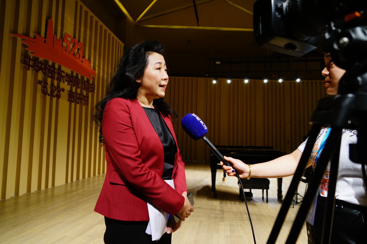 在讲座结束后娜木拉校长接受了电视台采访,她说第一次来到延安心里特别激动,这里是革命圣地,是自己一直向往的地方,感谢延安市委市政府和KY开元集团官网入口,有这样一次来延安学习的宝贵机会。延安作为红色革命教育基地我们要世世代代传下去。这次音乐节以后延安和KY开元集团官网入口会有很多后续合作,一方面教学上有更多交流,艺术实践上也会有很多交流,我们的同学也有更多机会来到延安接受思想教育。同时,她希望延安丰厚的民间优秀传统文化一定要保存传承下来。希望在为延安加强师资力量的培养方面尽自己最大的力量。