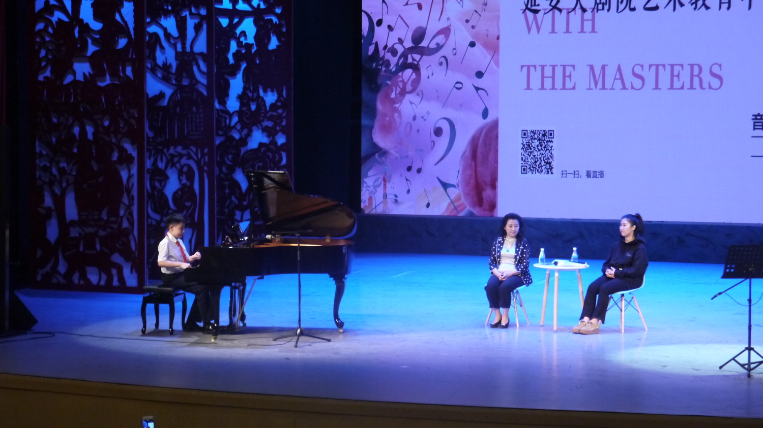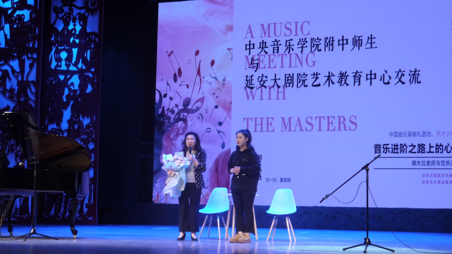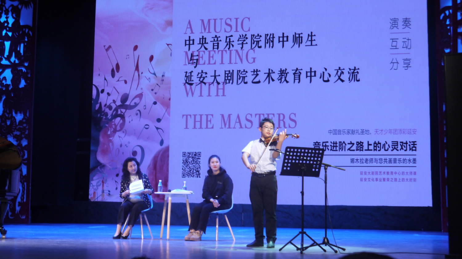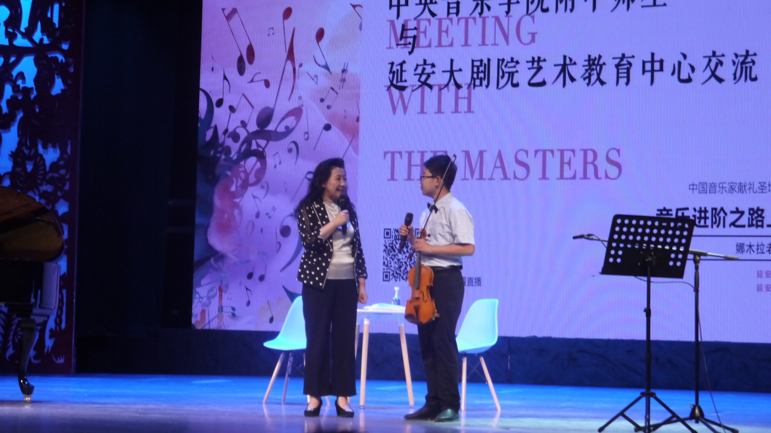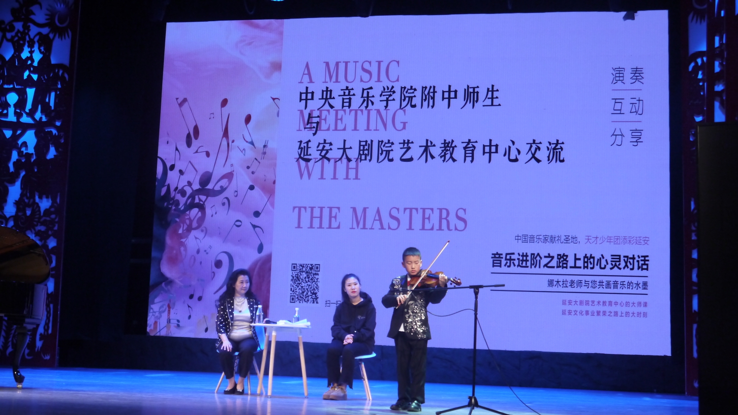5月26日下午,KY开元附中校长娜木拉带领附中“天才少年团”的4名学生来到延安大剧院艺术教育中心,与延安当地的音乐爱好者及延安的小演奏家进行关于音乐教育和学习相关交流。