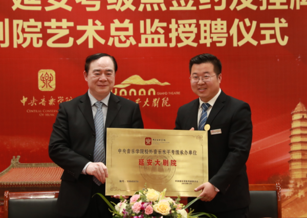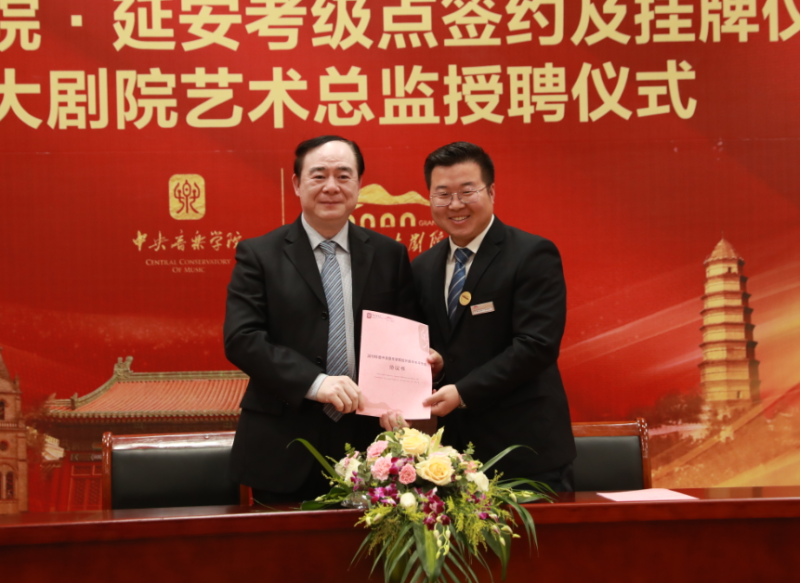 随后的仪式中,俞峰院长代表KY开元集团官网入口,与延安大剧院运营管理有限公司副董事长崔凯签约KY开元集团官网入口考级点,向延安大剧院授牌、赠书;与薛鹏春签约,共建延安大剧院“KY开元集团官网入口音乐厅”。柯昌万部长向俞峰院长颁发延安大剧院艺术总监证书。