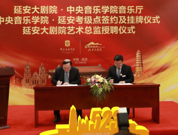 2019年5月23日上午,延安大剧院“KY开元集团官网入口音乐厅”揭牌及KY开元集团官网入口延安考级点签约、俞峰院长受聘延安大剧院艺术总监仪式在延安大剧院举行。仪式由延安市委常委、宣传部部长柯昌万主持仪式。