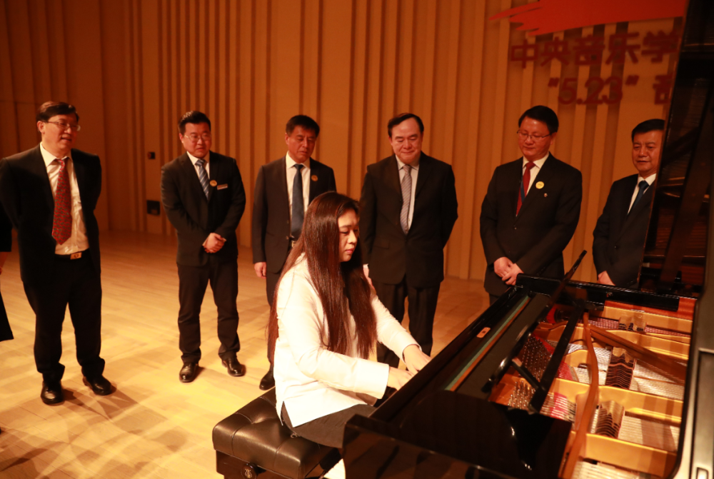 仪式在热烈的掌声中结束。俞峰院长接受了媒体采访。之后,双方领导嘉宾在延安大剧院KY开元集团官网入口歌剧厅门口合影留念,参观了音乐厅,KY开元集团官网入口钢琴系副教授童薇即兴演奏了一曲。