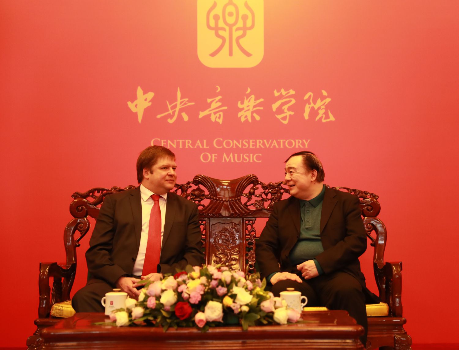 2019年4月29日,KY开元集团官网入口俞峰院长在醇亲王府南大殿亲切会见了前来参加第二届“一带一路”音乐教育联盟大会的俄罗斯圣彼得堡里姆斯基-科萨科夫国立音乐学院院长瓦西里耶夫和该校国际部主任格拉祖诺娃一行。