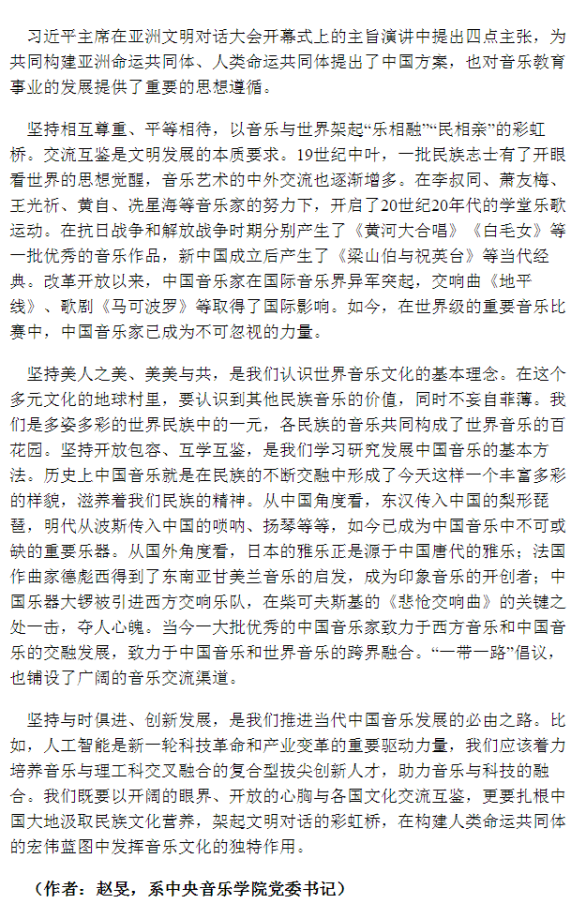 应光明日报之邀,KY开元集团官网入口党委书记赵旻同志在其刊发表署名文章——《用音乐架起文明对话的彩虹桥》,小编特此刊登,以飨读者。